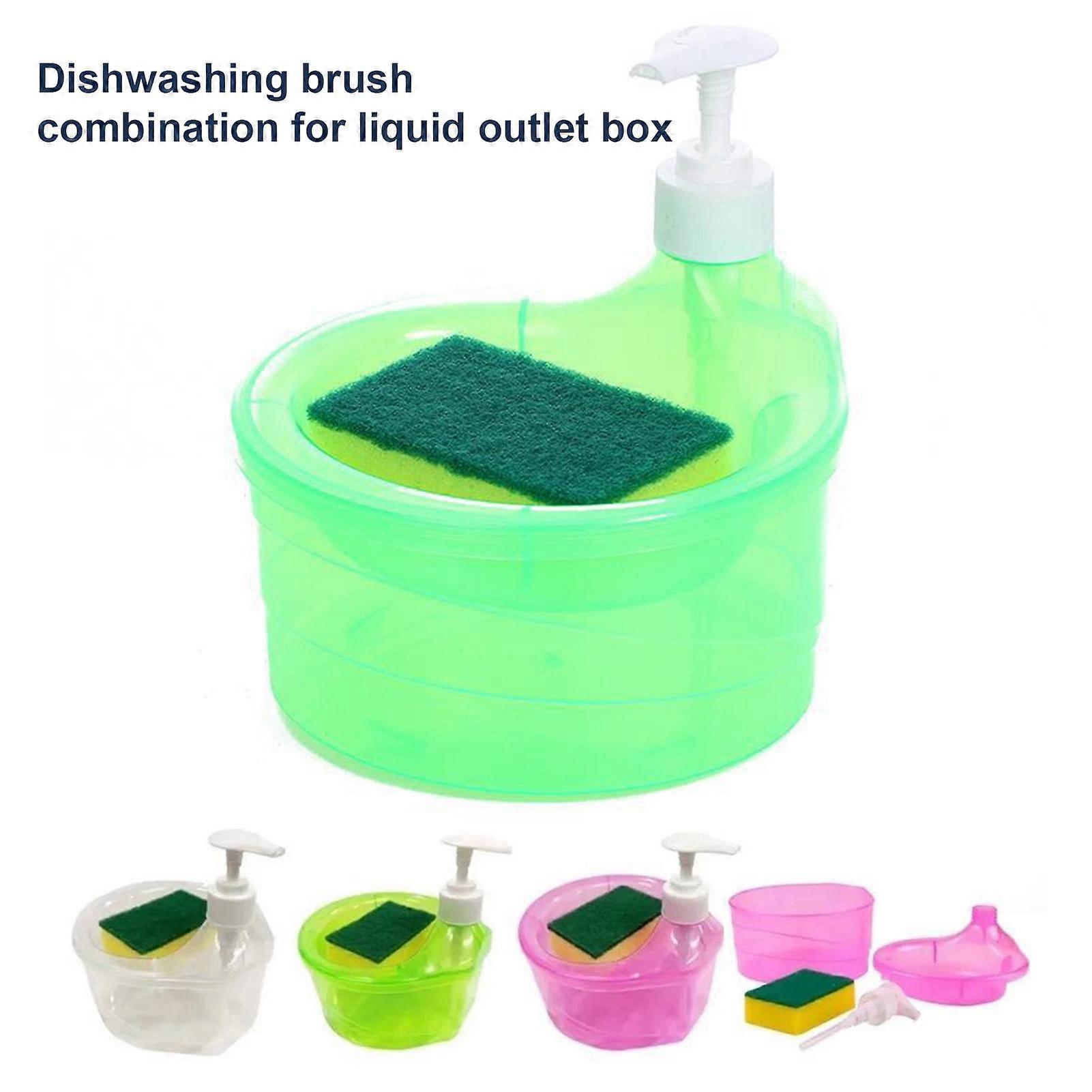 SUSUchens Soap Dispenser Scrubber Holder 2 in 1 Transparent Leakproof Kitchen Pump Dispenser Compatible with Sponge, Purple