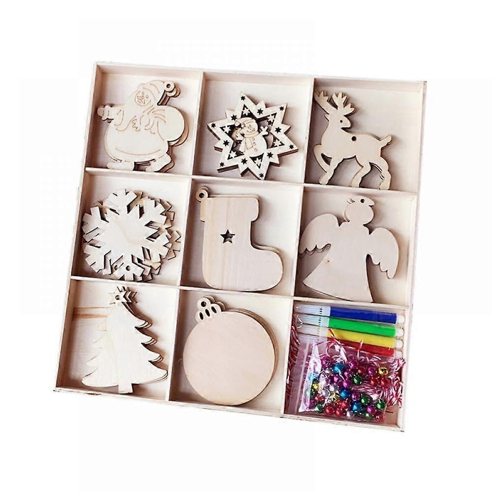32 Pcs Christmas Wooden Ornament Decorations Wooden Christmas Tree Hanging Pendant Decoration Xmas Holiday Hanging Crafts