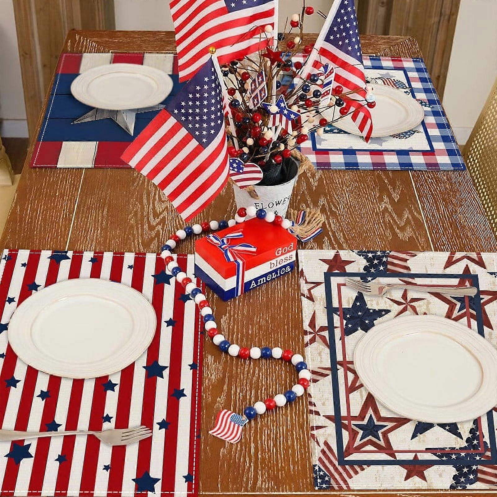-----------------------------------------------------------------------------------FloHua------------------------------------------------------------------------------------------------------- FloHua Christmas Gifts Clearance Independence Day Linen Placemats Star Stripe Printed Insulated Placemats Holiday Restaurant Party Decoration Table Runner Independence Day Linen Placemats Star Stripe Printed Insulated Placemats Holiday Restaurant Party Decoration Table Runner Features: THEME DESIGN: This placemat is designed with the theme of American Independence Day, using the and pattern on flag, which has a strong holiday and patriotic colors. MATERIAL CHOICE: The placemats are made of linen, a natural fiber popular for its breathability, absorption and durability. MULTIFUNCTIONALITY: In addition to being used in holiday parties, these placemats are also suitable for everyday dining as heat pads to the tabletop from hot utensils. Decorative effect: the star-striped print design is not beautiful, but also adds a of festive to the table, suitable for all kinds of . Applicable : these placemats are suitable for family gatherings, ' dinners, holiday celebrations and other , which can enhance the dining experience and ambience. Product Description: Product Details Includes: Placemat*1 -----------------------------------------------------------------------------------FloHua------------------------------------------------------------------------------------------------------- Features: THEME DESIGN: This placemat is designed with the theme of American Independence Day, using the and pattern on flag, which has a strong holiday and patriotic colors. MATERIAL CHOICE: The placemats are made of linen, a natural fiber popular for its breathability, absorption and durability. MULTIFUNCTIONALITY: In addition to being used in holiday parties, these placemats are also suitable for everyday dining as heat pads to the tabletop from hot utensils. Decorative effect: the star-striped print design is not beautiful, but also adds a of festive to the table, suitable for all kinds of .