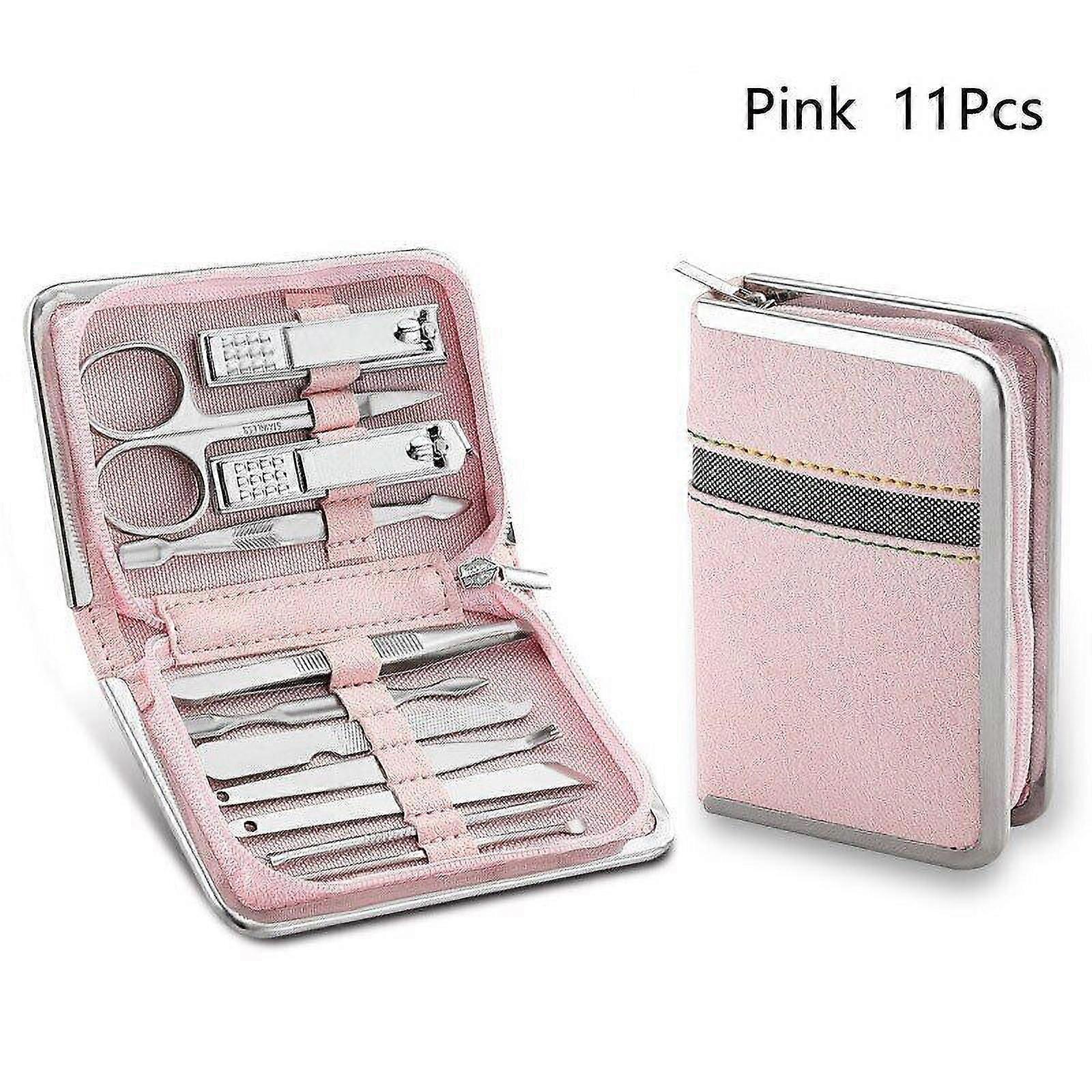Cterwk 11PCS Professional Stainless Steel Nail Clippers Manicure Set Cutter Scissor, Pink