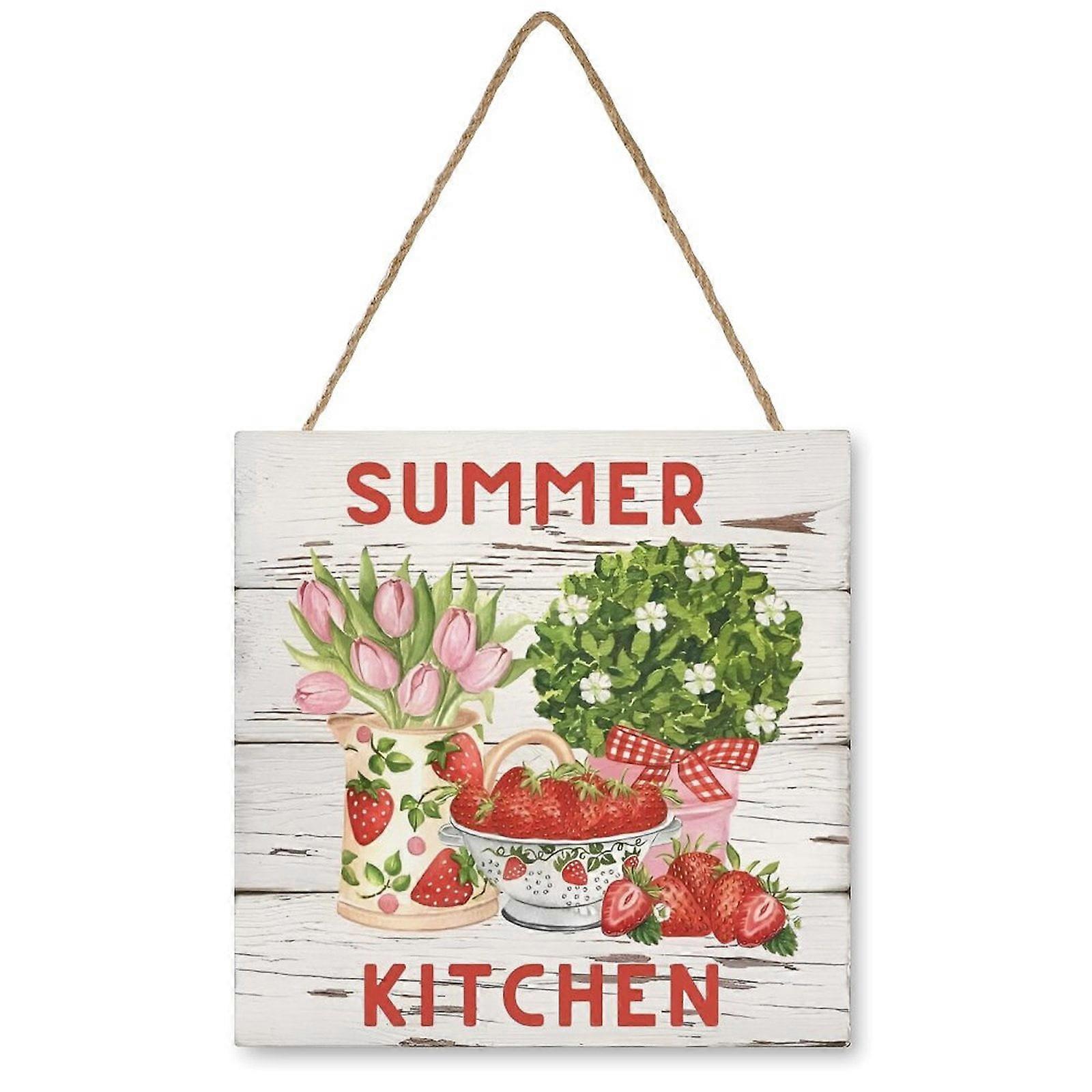 Funny Wooden Signs Summer Kitchen Strawberries, Decorative Plaques, Farmhouse Hanging Signs with Inspirational Quotes, Home Decor, 12x12 inch