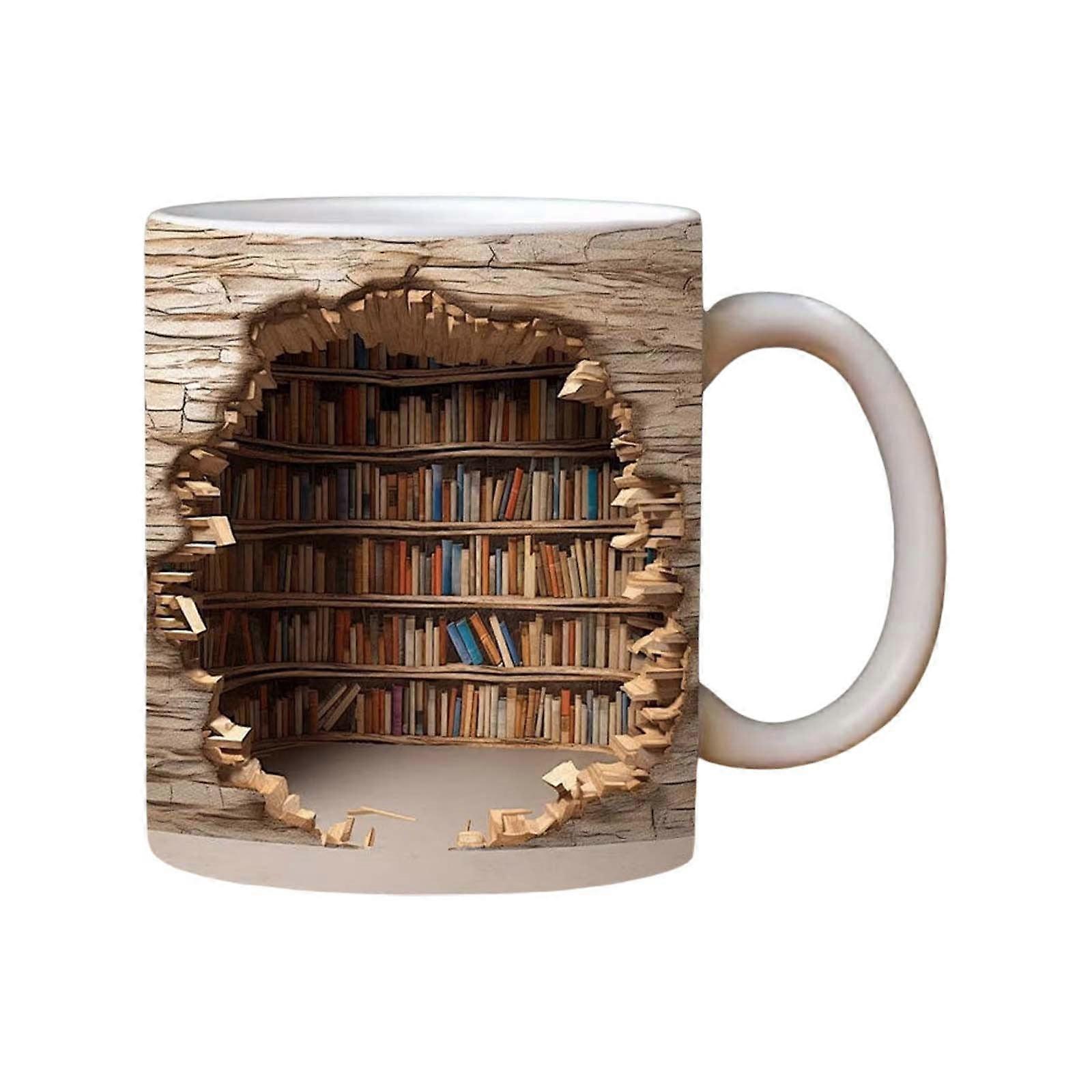 XIUH Halloween Clearance! Kitchen Tools 3D Bookshelf Mug 3D Effect Books Mugs Cool Birthday Christmas Gifts for Him Her White Ceramic Mug 11oz (BA)