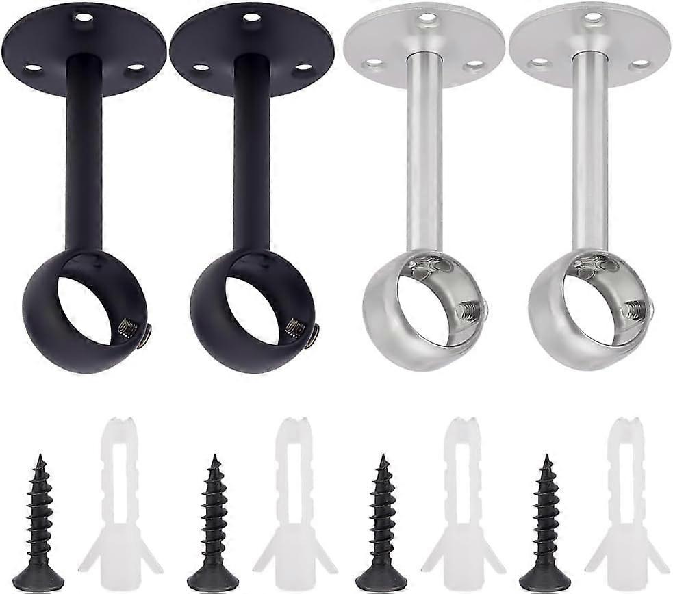 4 Sets 1" Ceiling Mount Curtain Rod Brackets, 201 Stainless Steel with Screws, Black & SS Color, DIY Closet Rod Holder