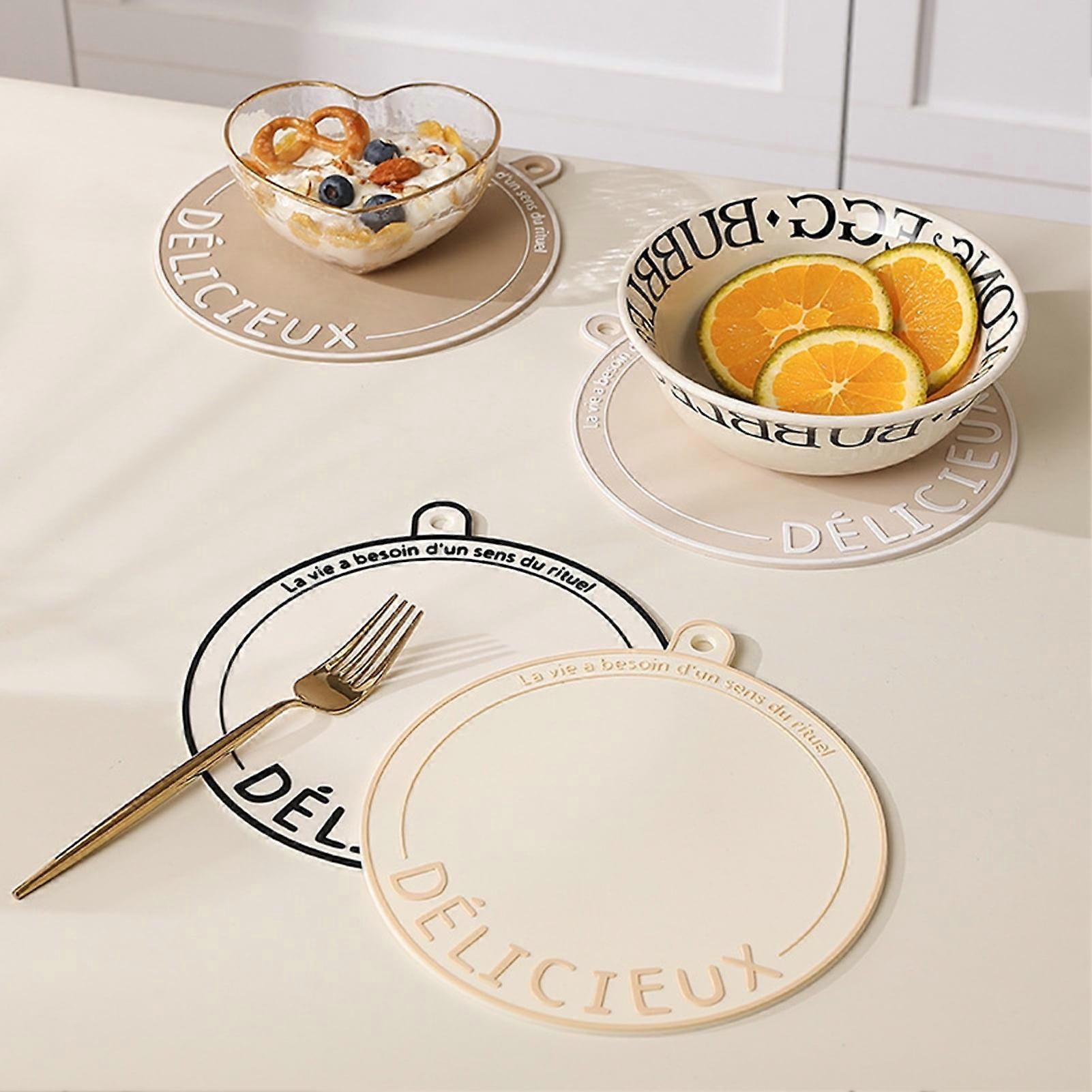 Hariumiu Round Heat-Resistant Tea Coaster with Handle Warm Color Thickened Romantic French Placemat for Bowls Plates