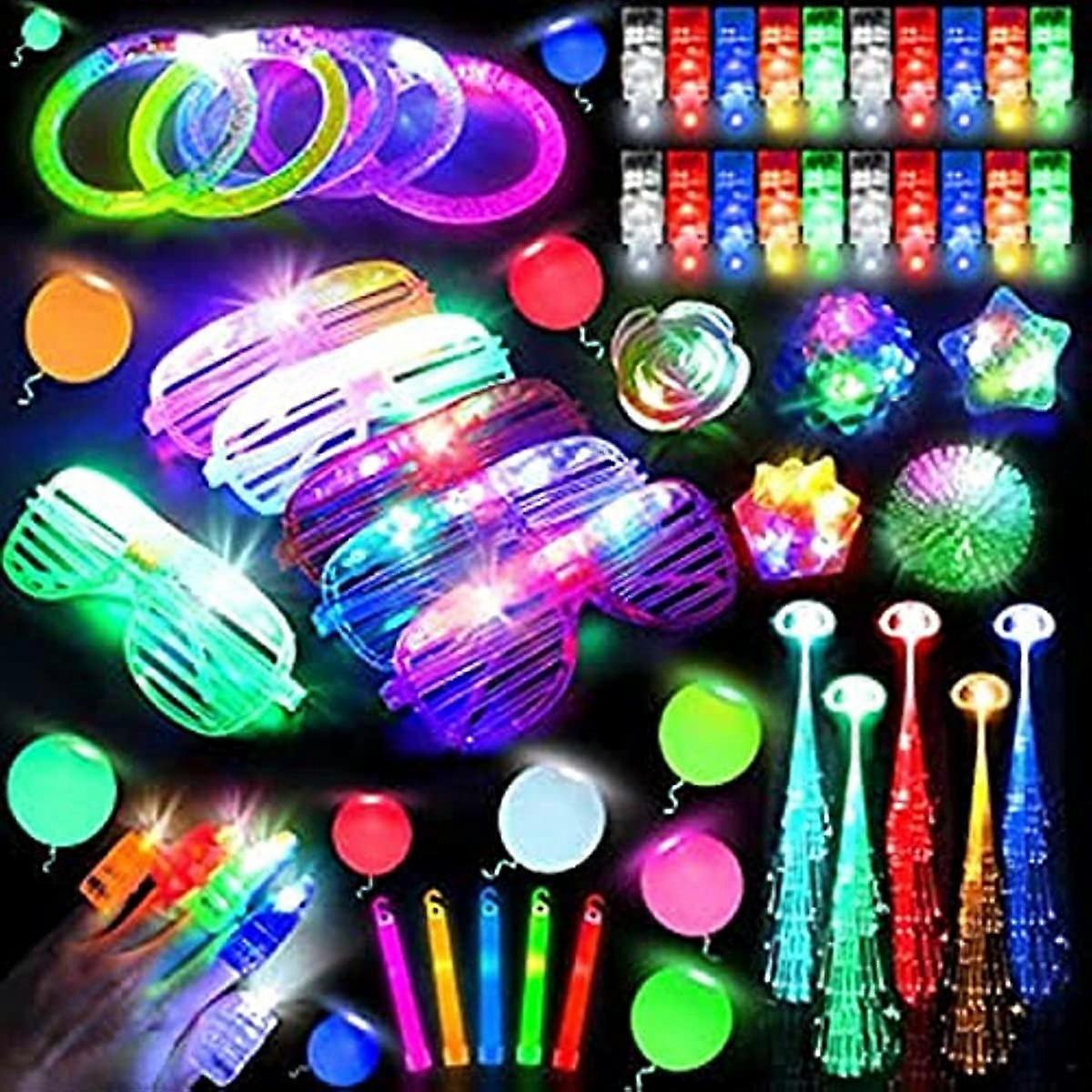 LINLIN 60 pcs LED Light-Up Toys Set with Finger Lights, Glow Glasses, Balloons, Jelly Rings for Kids & Adults, Party Favors, Birthday, Halloween,