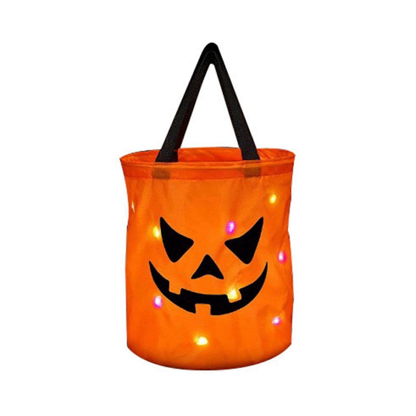 LED Light Up Halloween Candy Bags, Compatible with Uclet Party Decorations, Reusable Pumpkin Buckets for Kids, Trick or Treat
