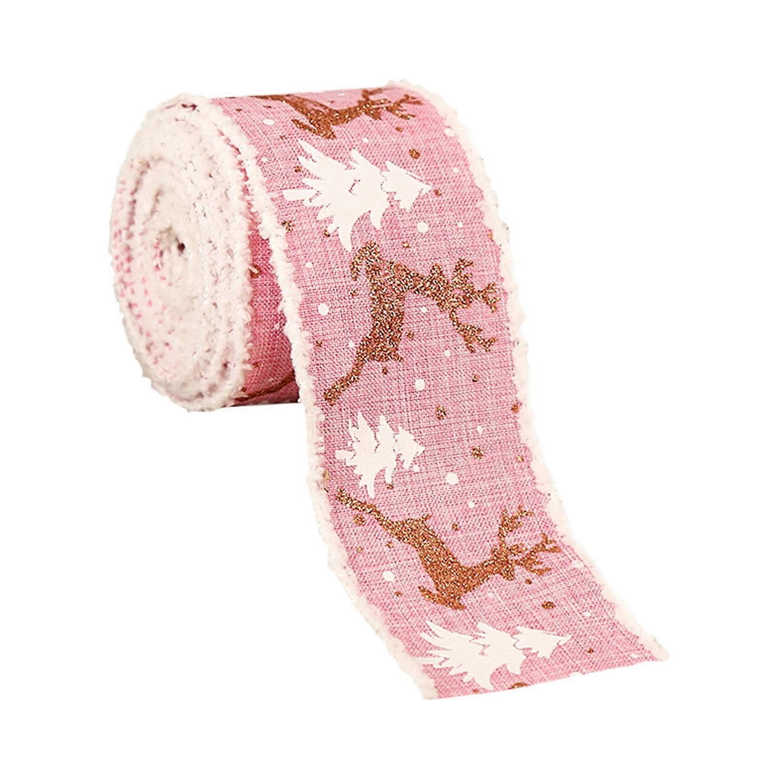 Miayilima Hangs Christmas Ribbon Wired Edge Decorations 6.5CM Linen Printed Elk Christmas Tree Ribbon Gift Box Packaging Ribbon Pink