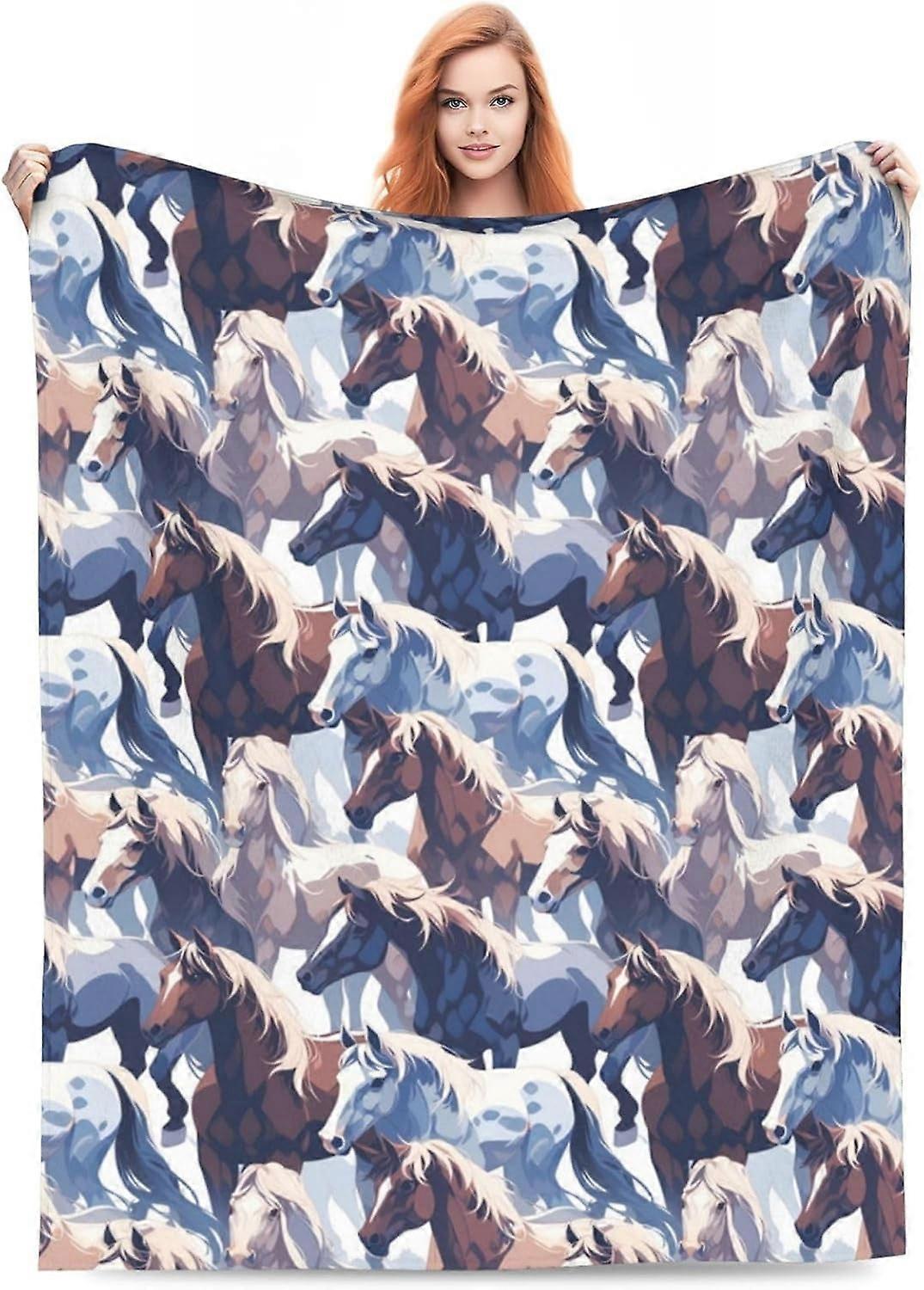 Horses Pattern Flannel Throw Blanket 50x40 Inches, Soft Lightweight Fuzzy Sofa Blanket for Women Girls, All Season Home Decor