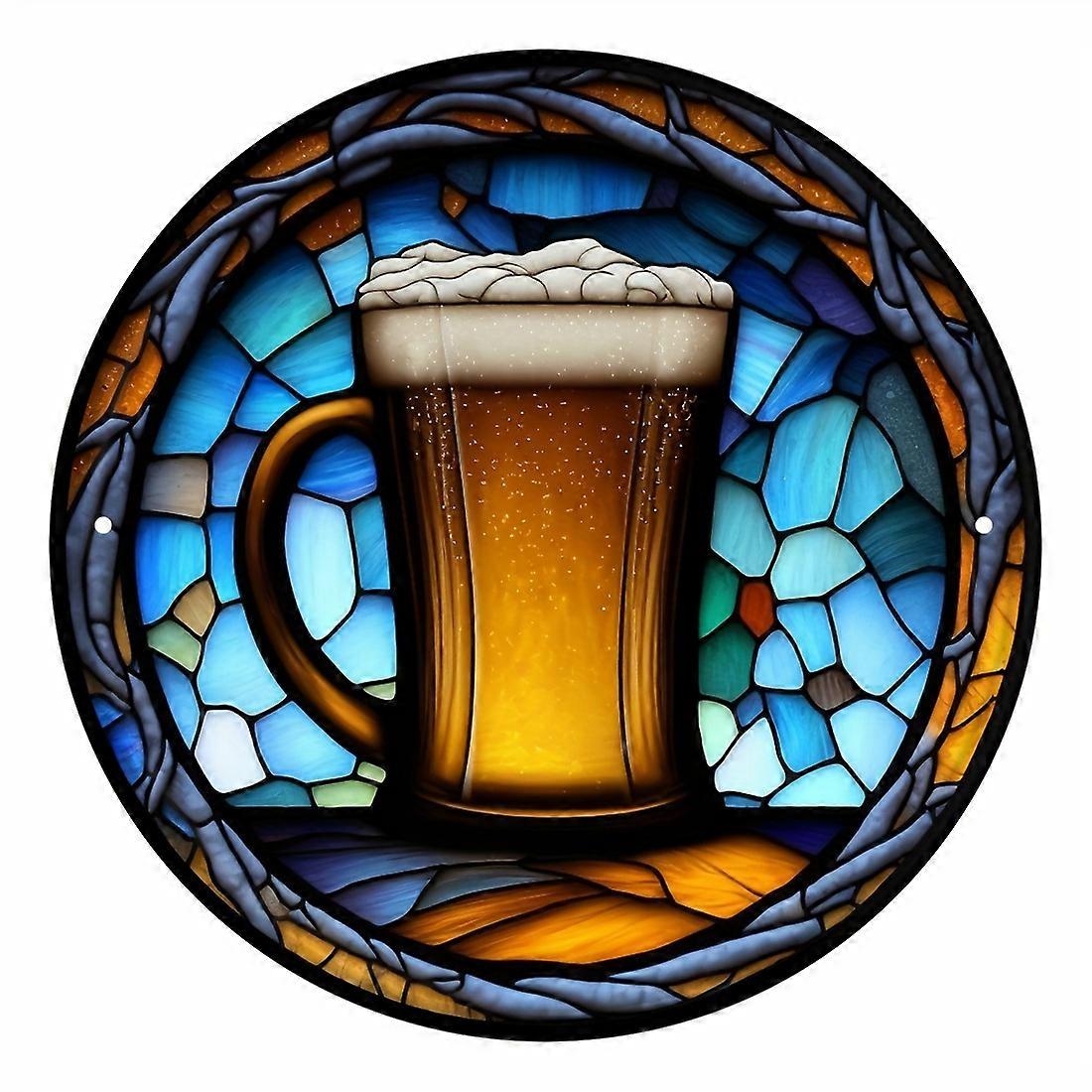1pc Bar Beer Wreath Sign - Rustic Metal Tin Wall Hanging, Compatible with Outdoor & Indoor Decor, Round Fashion Art Aesthetic, Holiday Gift