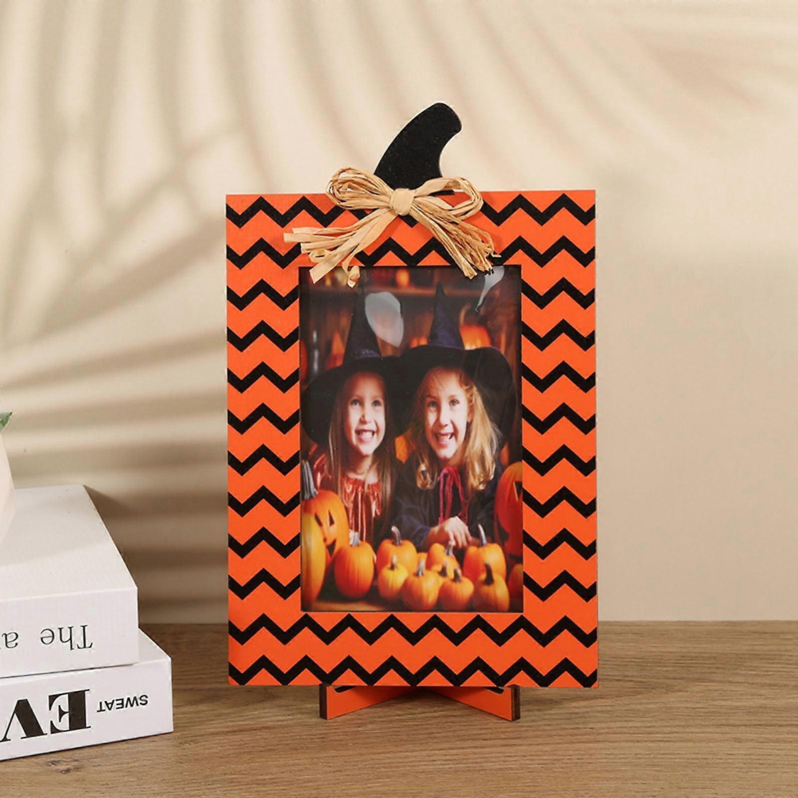 Halloween Ghost Wood Photo Frame Ornament, Portable Party Decoration, Pumpkin Shape Wooden Craft, Compatible with Home & Interior