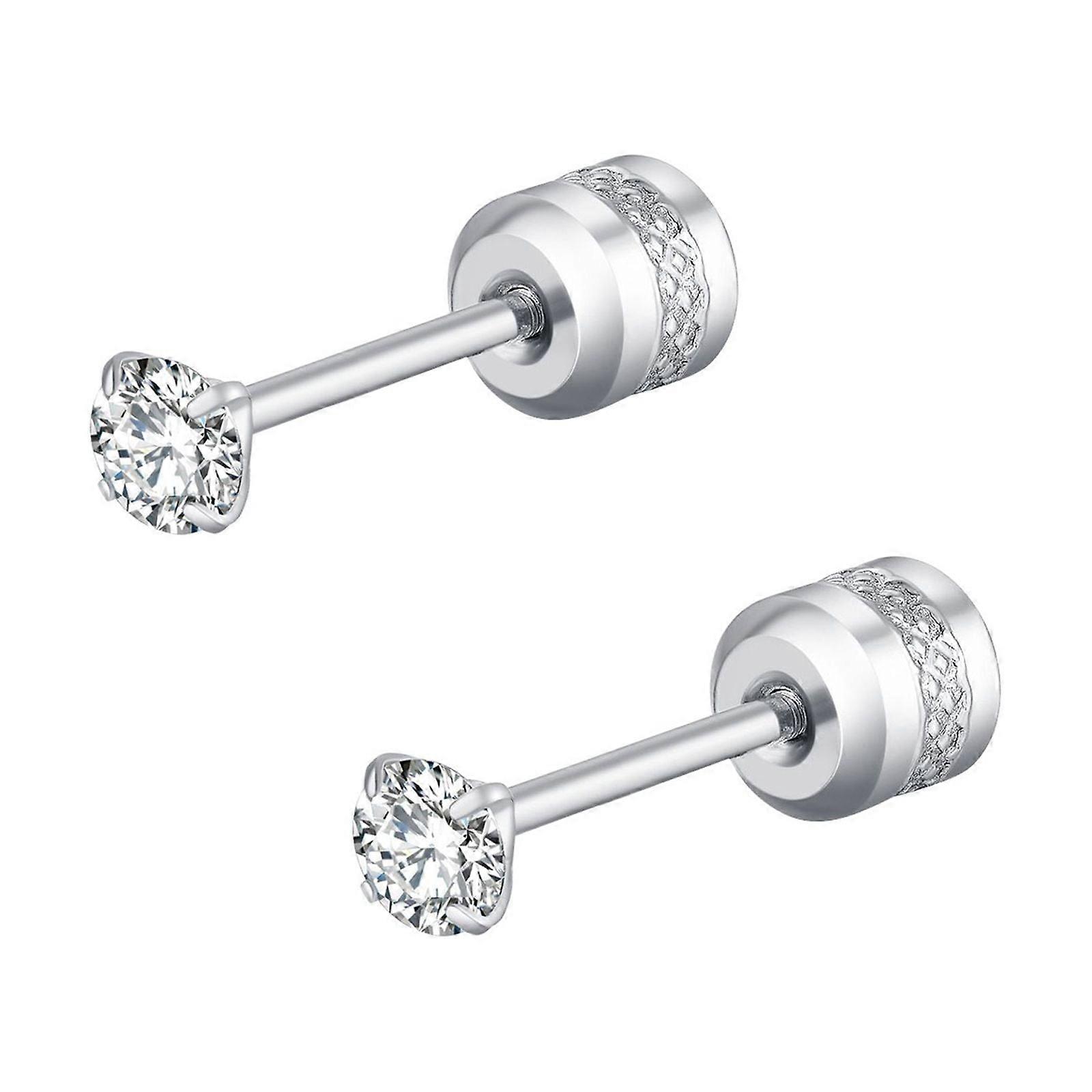 VOSS Lady Pack Of Titanium Screw Back Earrings For Sensitive Ears Titanium Steel Thin Cylinder Simple Diamond Encrusted Earrings