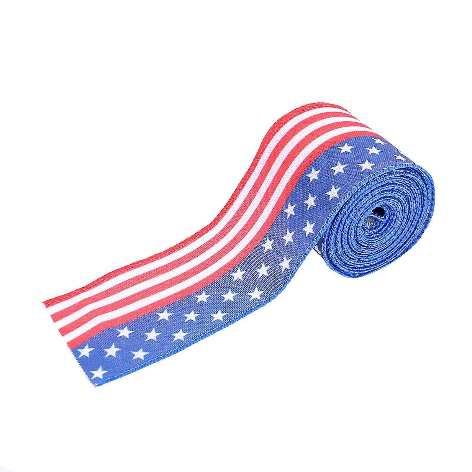 EQWLJWE 196" Red White Blue Ribbon Patriotic Star Striped Wired Royal Blue USA DIY Crafts for 4th of July, Independence Day, Memorial Day