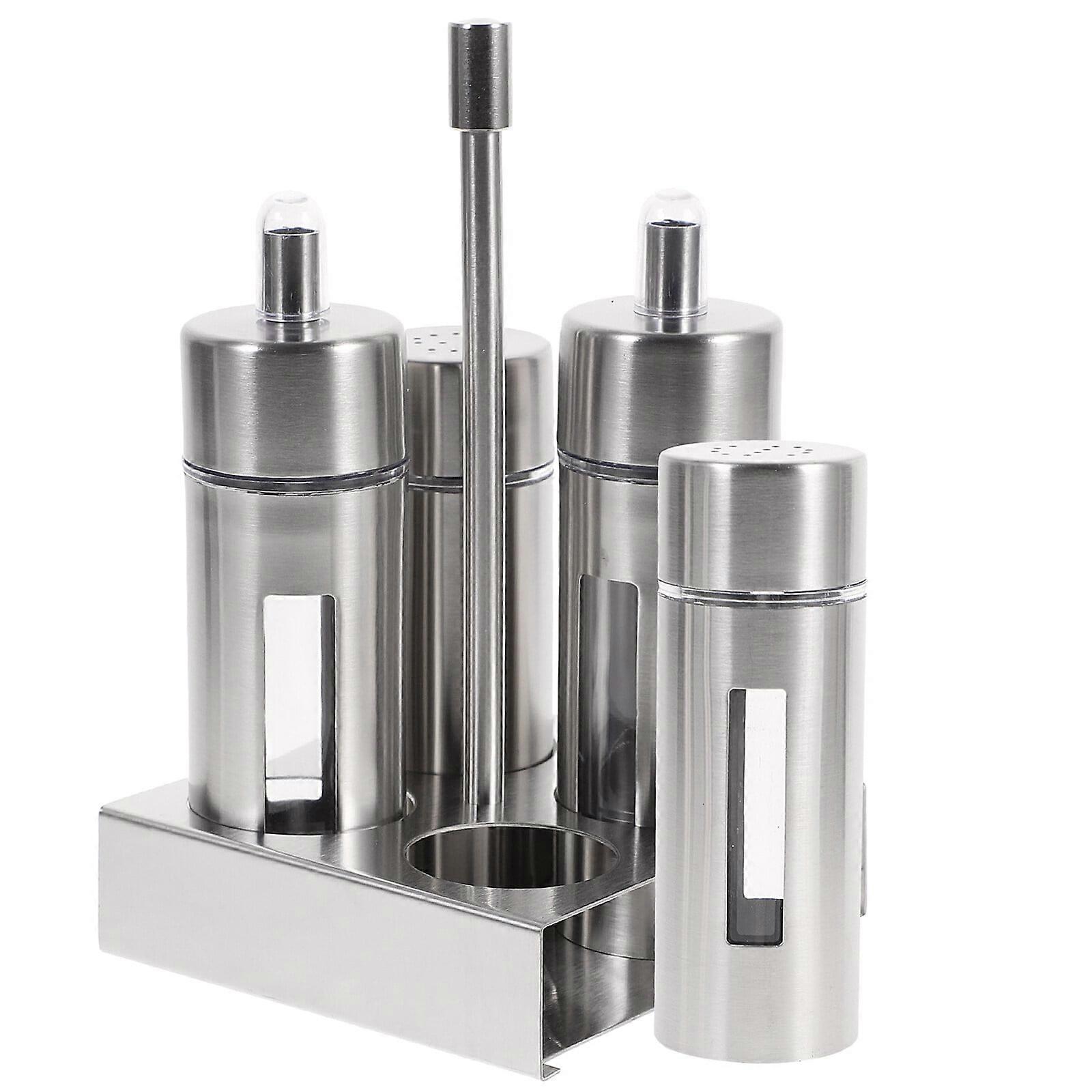 Stainless Steel Seasoning Storage Set with 4 Containers & 1 Base Stand, Compatible with Kitchen Home Pepper Salt Shaker Sauce Vinegar Bottles