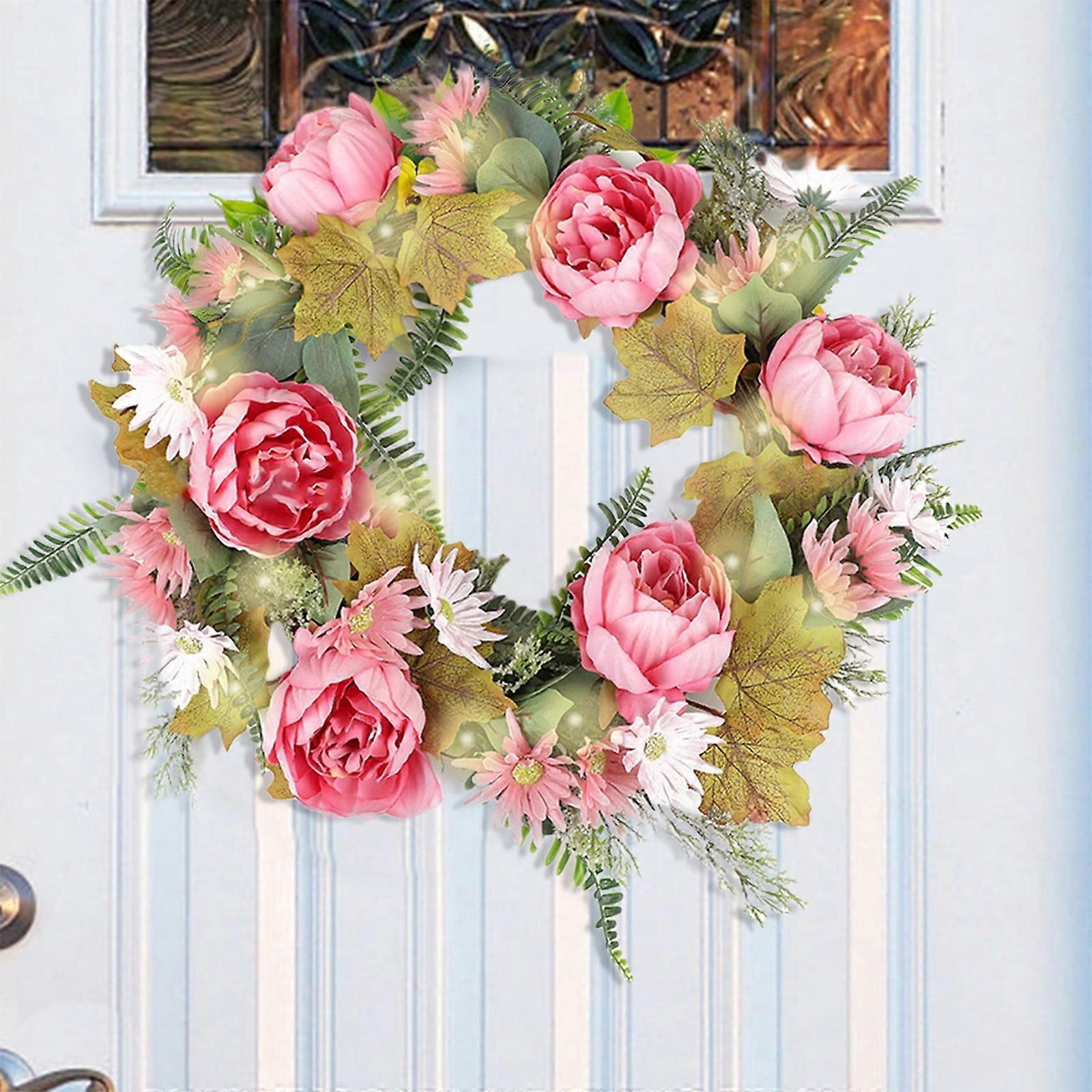 Valentines Day Savings! Pre-Lit Artificial Roses Wreath for Indoor Outdoor Decor, Compatible with Christmas & Valentine's Day, Pink