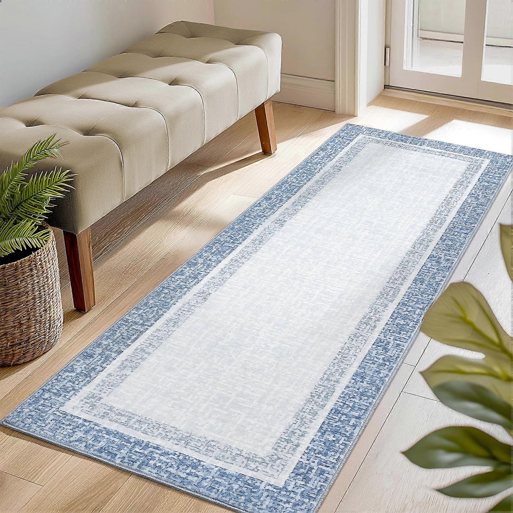 Haperlare Bordered Runner Rugs for Hallway Washable Low Pile Non Slip Laundry Rug Runner Rugs for Entryway Blue Floor Mat,2'x6'