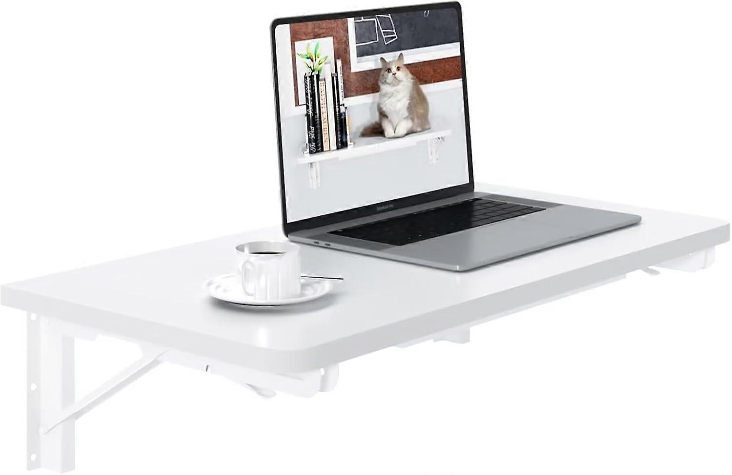 Wall Mounted Desk, White Folding Desk for Small Spaces Floating Shelf Organizer with Heavy-Duty Brackets for Home Office