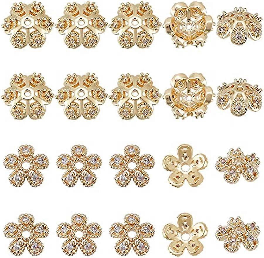 20Pcs 2 Styles Flower Bead Caps, Hollow End Caps with Cubic Zirconia, for Jewelry Making Crafts Supplies