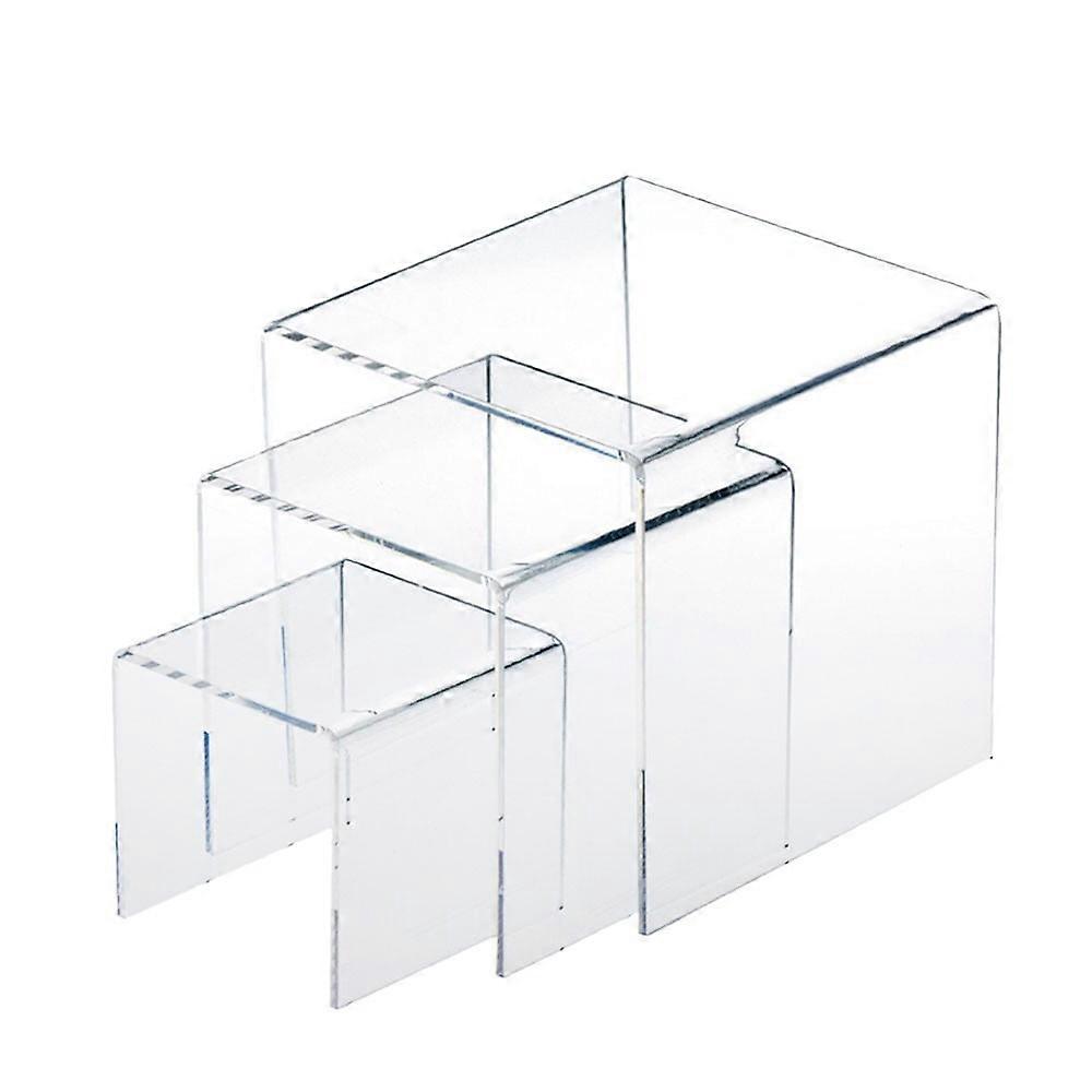 3pcs Square Acrylic Clear Display Stands Showcase Set Jewelry Makeup Holder