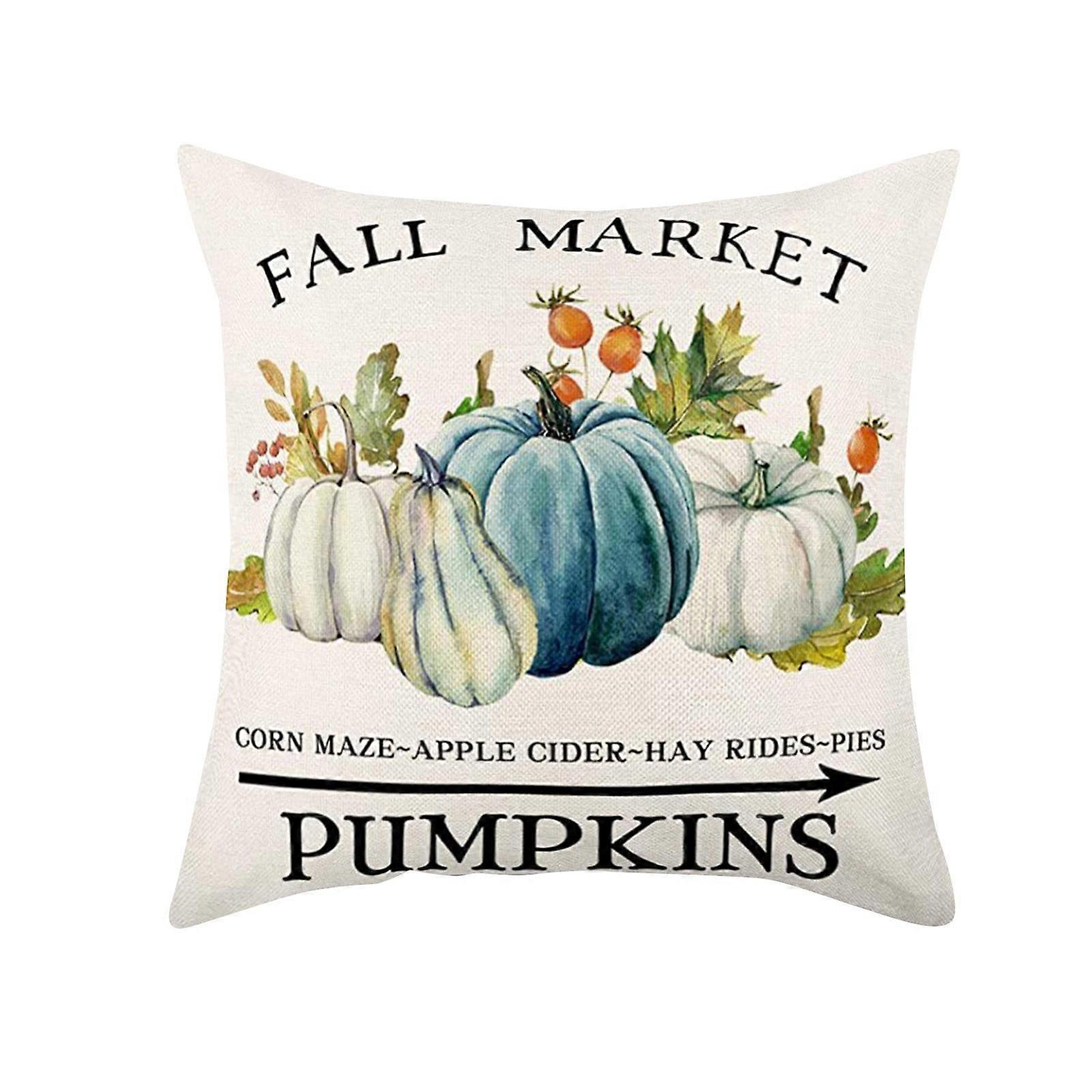 Halloween Decor Pillowcase 18x18 Inch, Compatible with Thanksgiving Truck Car Big Pumpkin & Happy Holidays, Linen Square Pillowcase