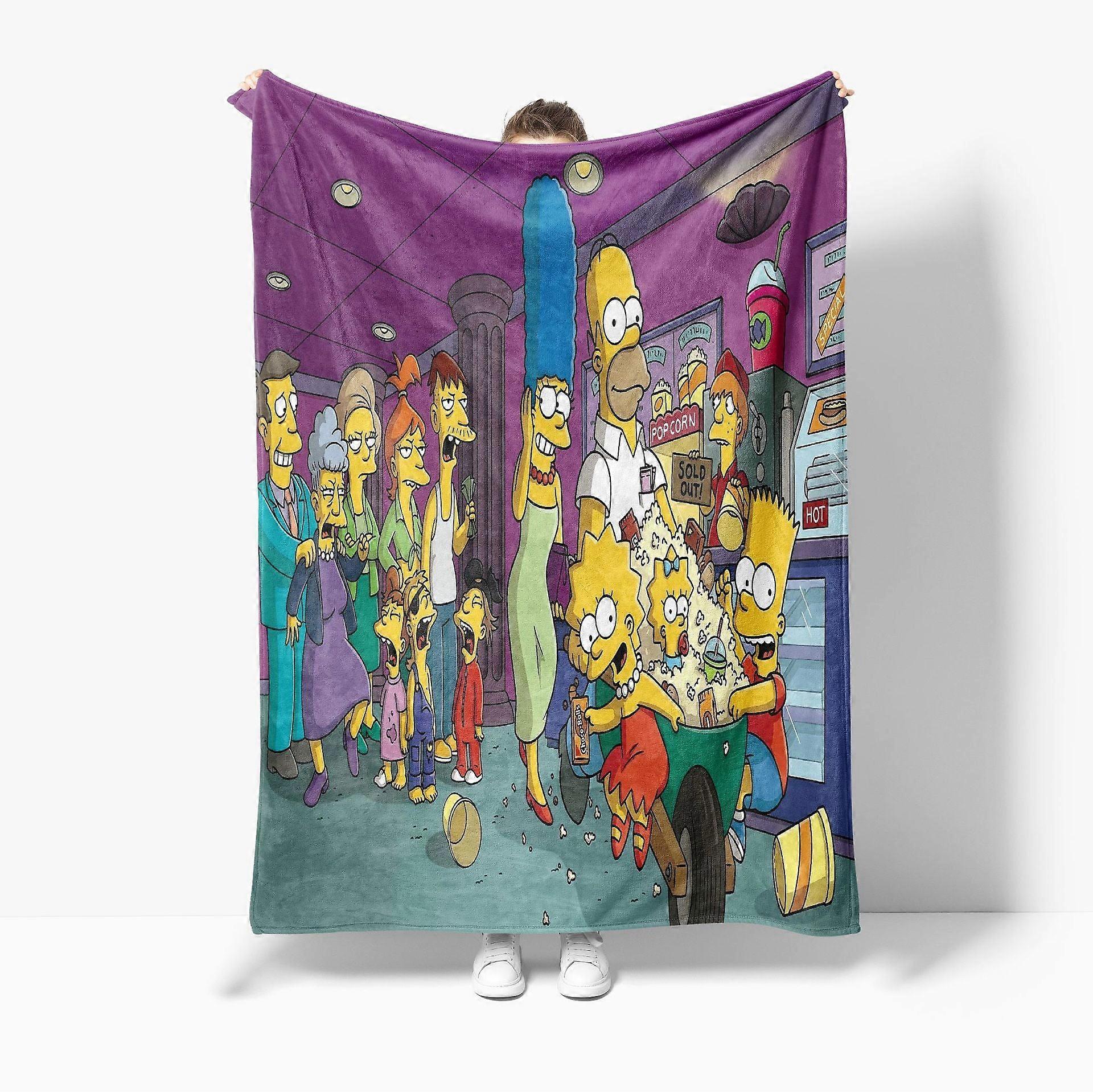 Cute Anime The Simpsons Blanket, Soft Lightweight Flannel Throw Compatible with Cartoon Lovers, Perfect Gift for Teens, Kids, Adults