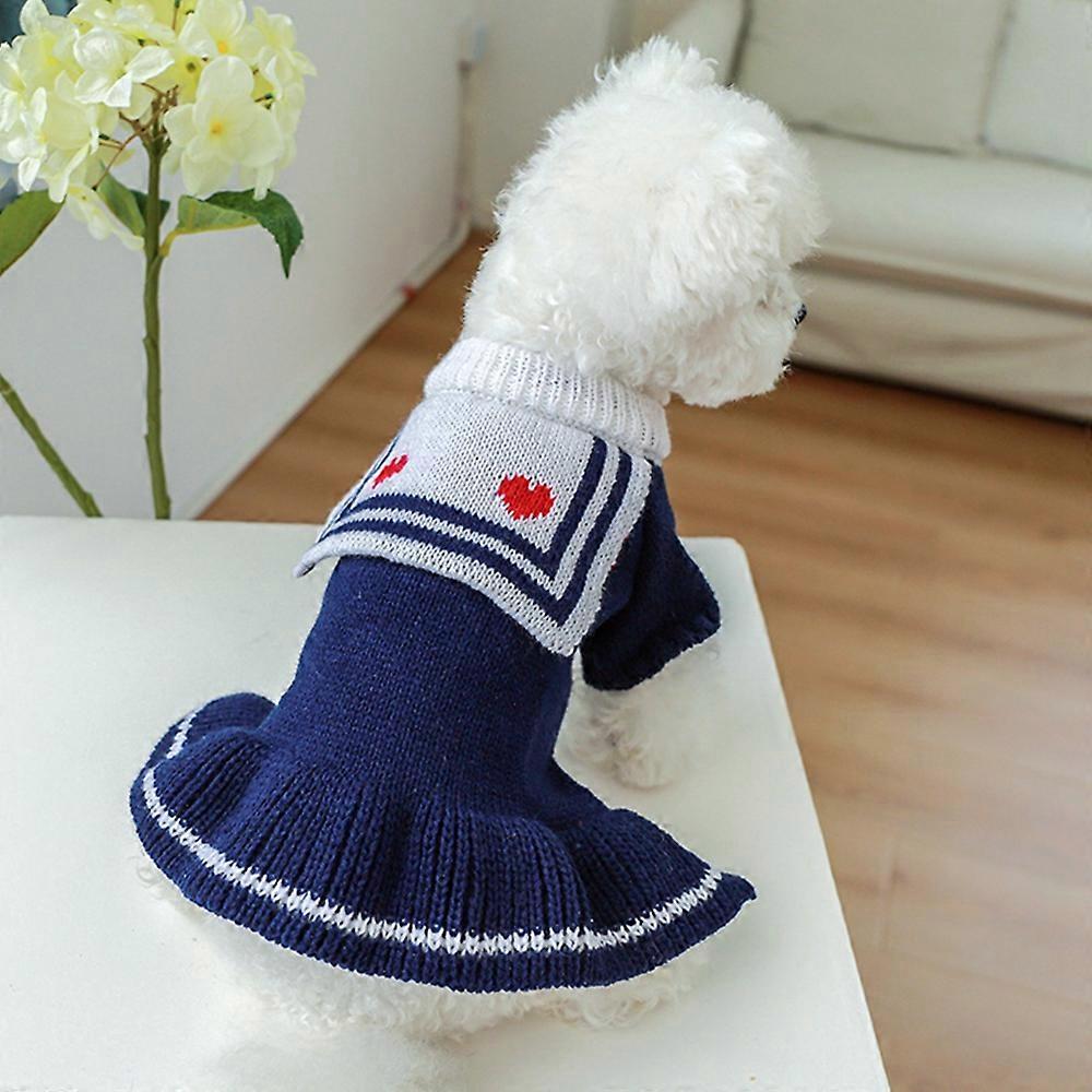 Pet Navy Sweater Suit Sailor Costume Student Uniform Cute Skirt Warm Clothes for Cats and Dogs
