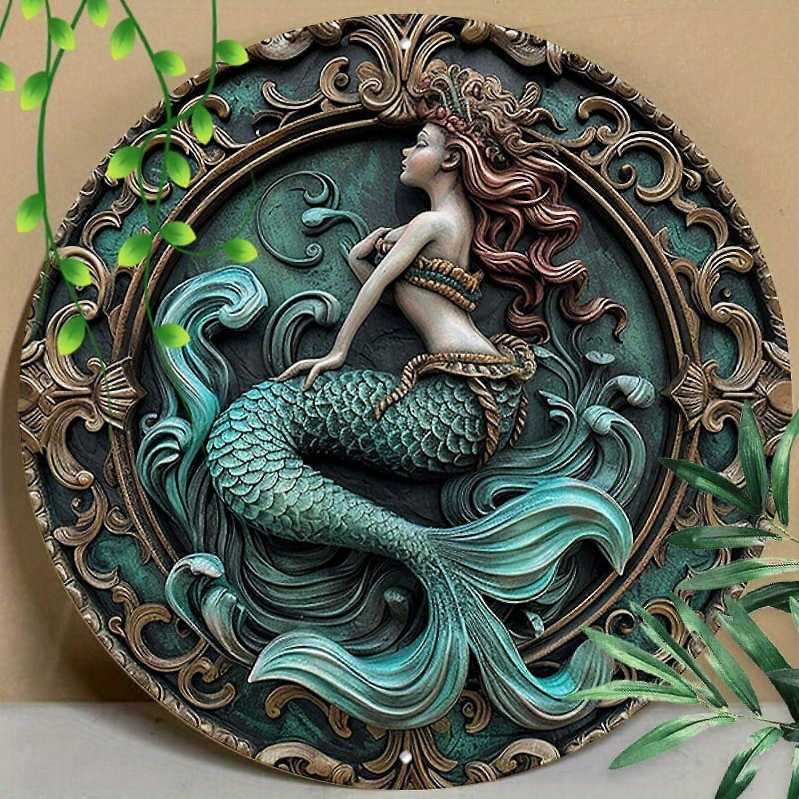 1pc, 8x8inch (20x20cm) Round Aluminum Sign Metal Sign Funny Vintage Mermaid Print Decorations Metal Sign For Office Coffee Cafe Decor
