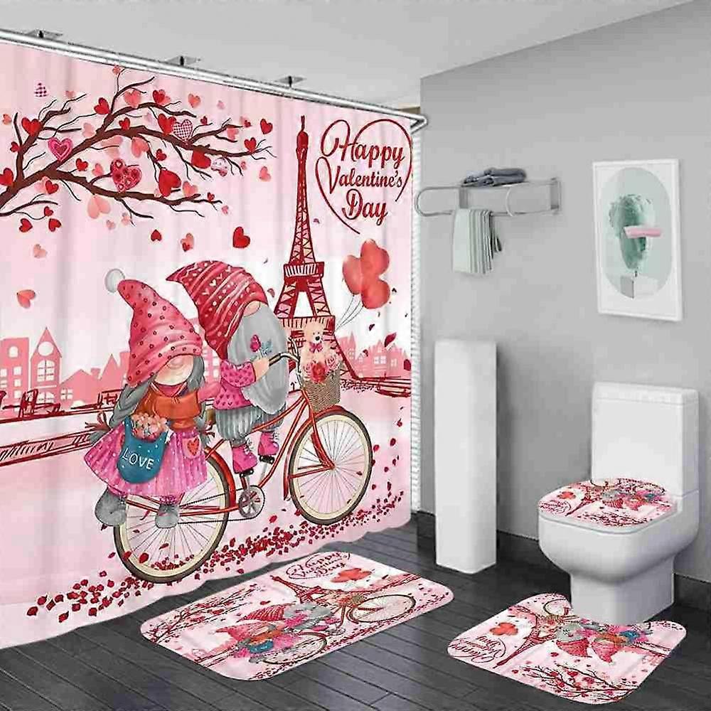 4 Pcs Shower Curtain Set Bathroom Curtain with Hooks Soft Mat Set Carpet Rugs Romantic Valentine's Day Home Decor