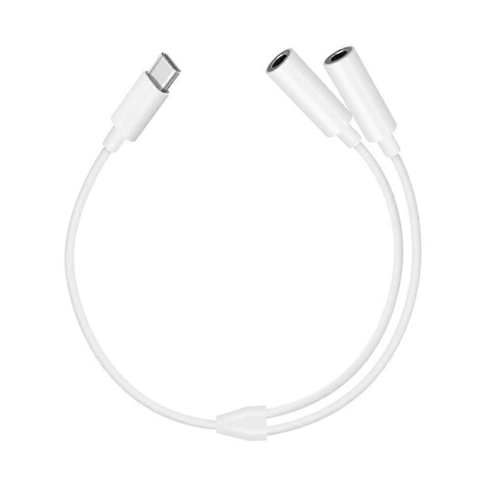 Type-C to Double 3.5mm Earphone Cable Adapter Usb 3.1 Type C USB-C Male to Double 3.5 AUX Audio Female Jack (White)