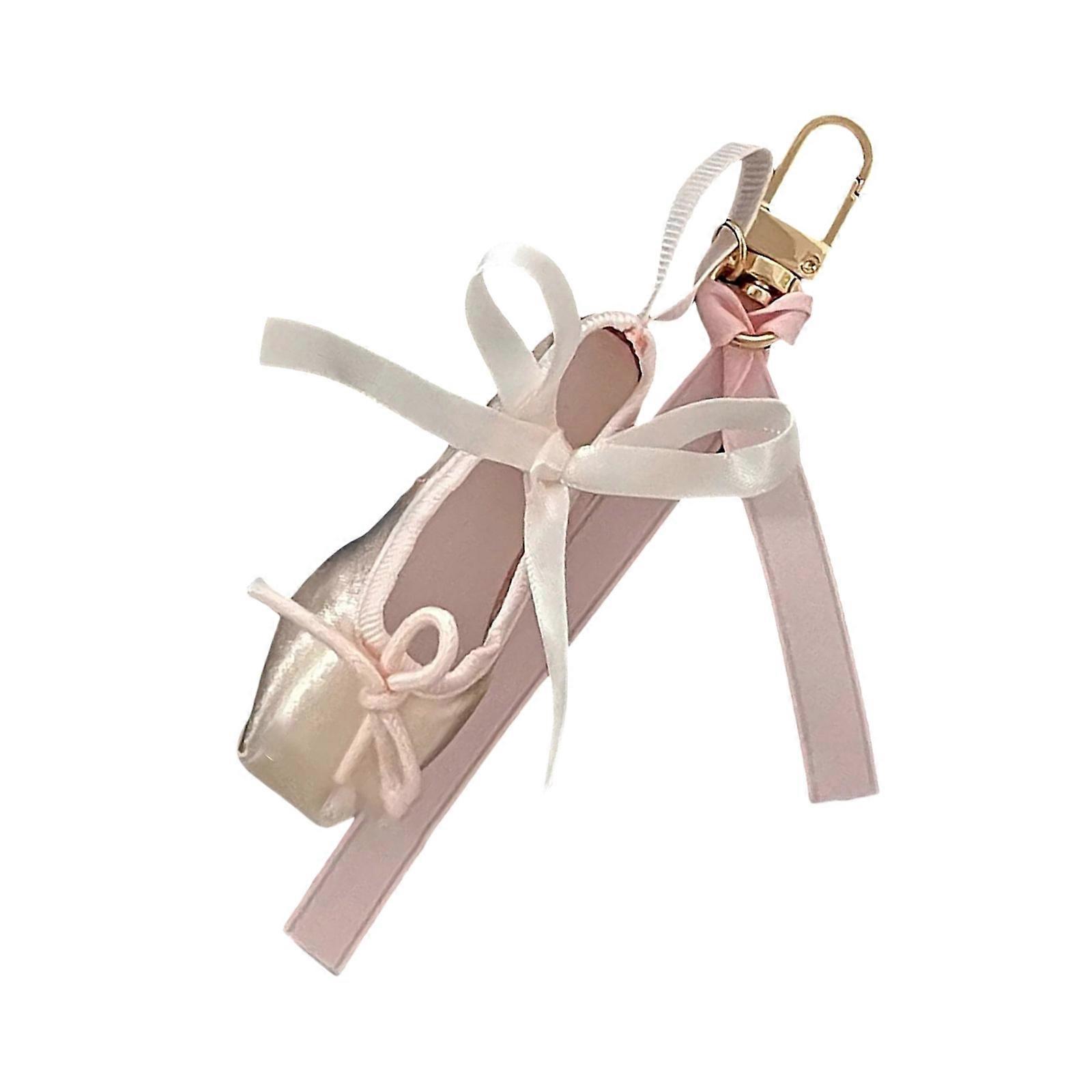 Elegant Dance Shoe Ribbon Charm Keychain Fabric Texture Cuteness Hanging Pendant Suitable for Dancers and Teachers Multicolor