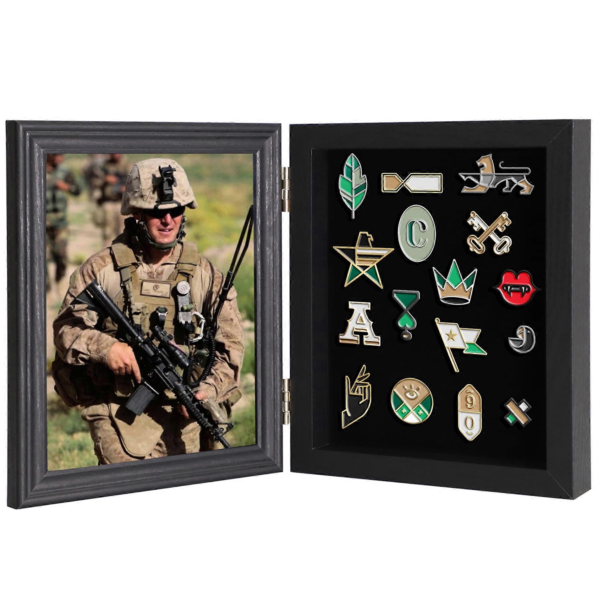 Pin Display Case with UV Protection Acrylic Door for Military Medals, Jewelry Pins, Insignia Ribbons - Fits 7x9 or 6x8 Photos with Mat
