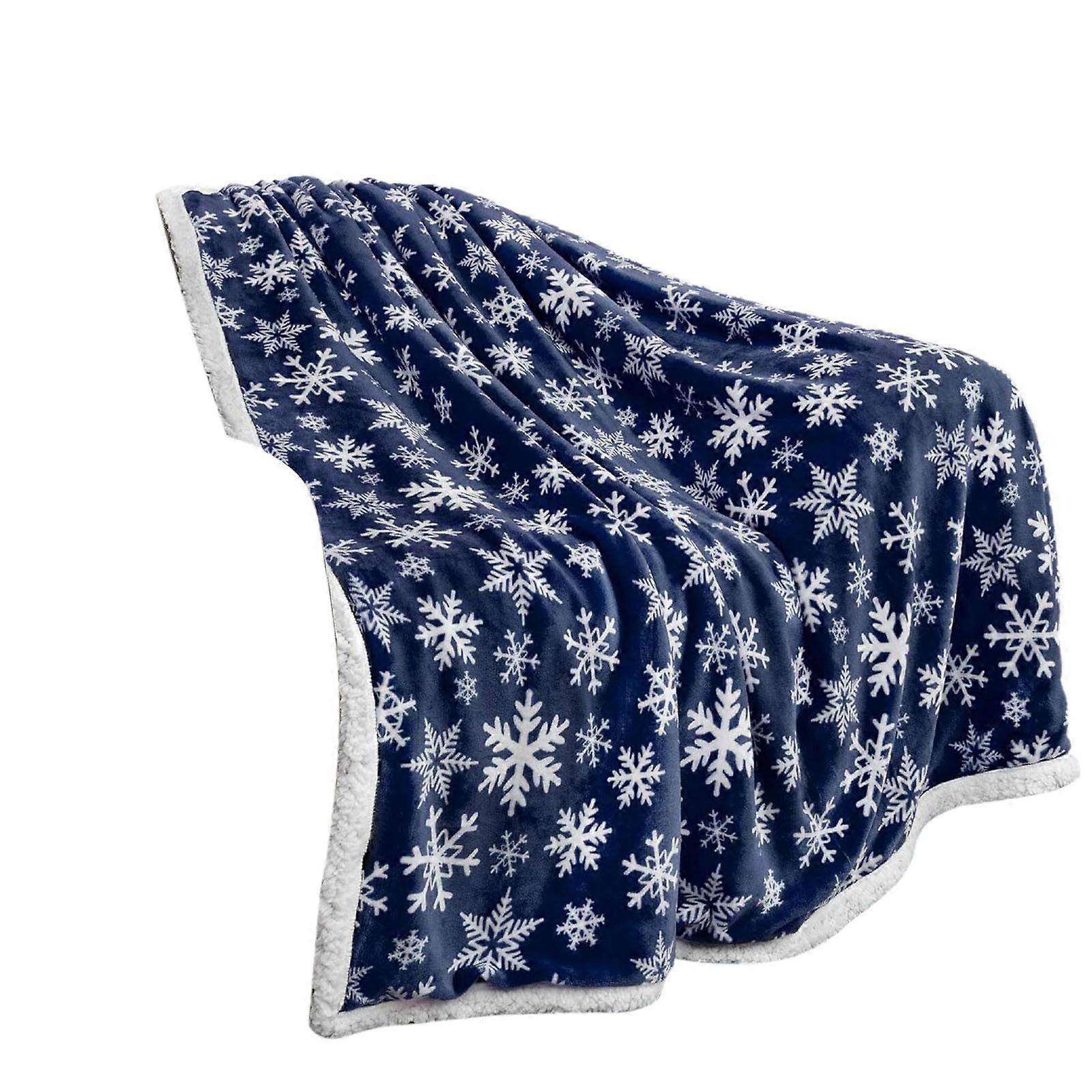 Christmas Blanket Red Blue Snowflake Print, Soft Warm Nap Blanket Compatible with Sofa Bed Camping Outdoors Festival