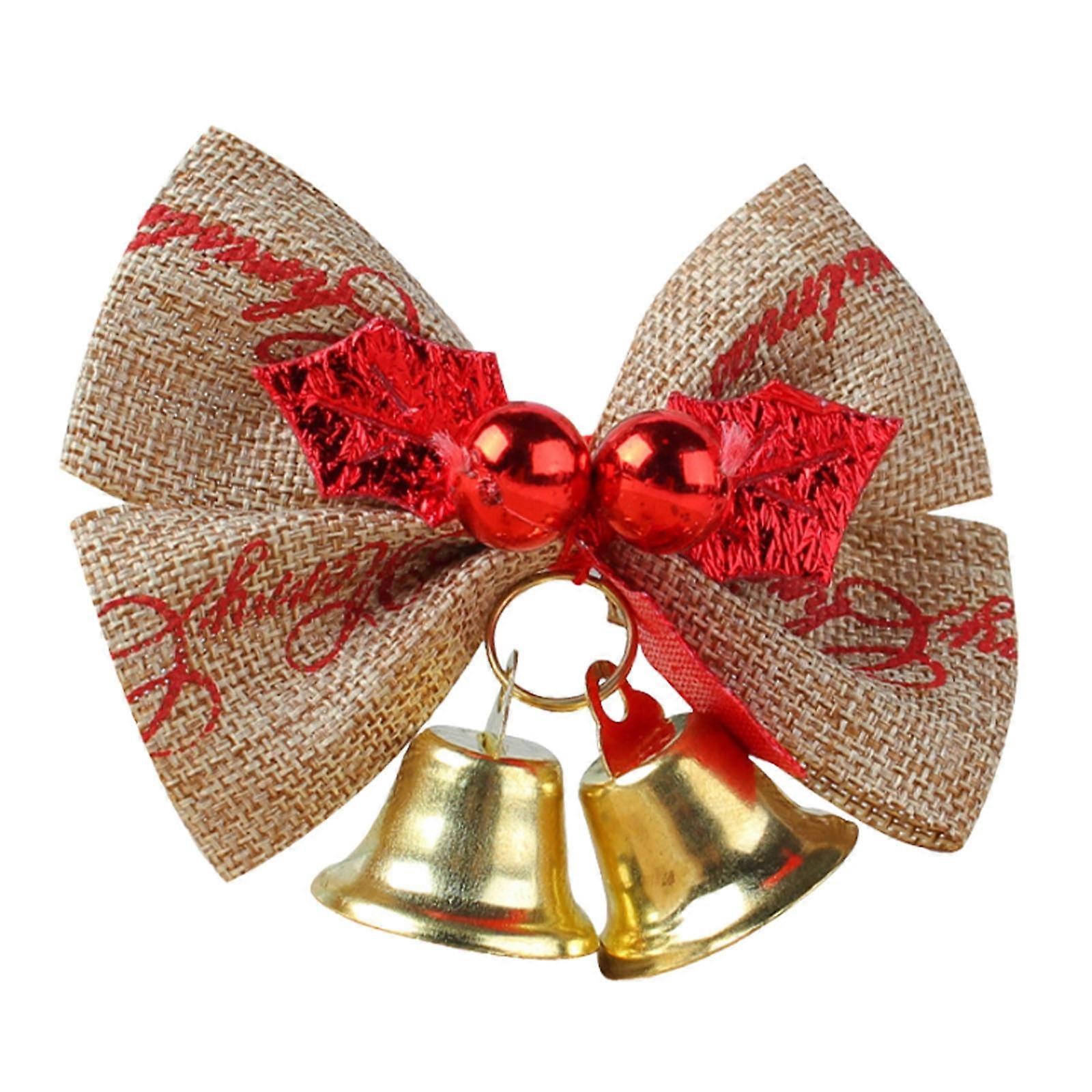 Christmas Bows with Bells, Xmas Wreath Bowknot Decor for Tree & Holiday Party - 1Pc