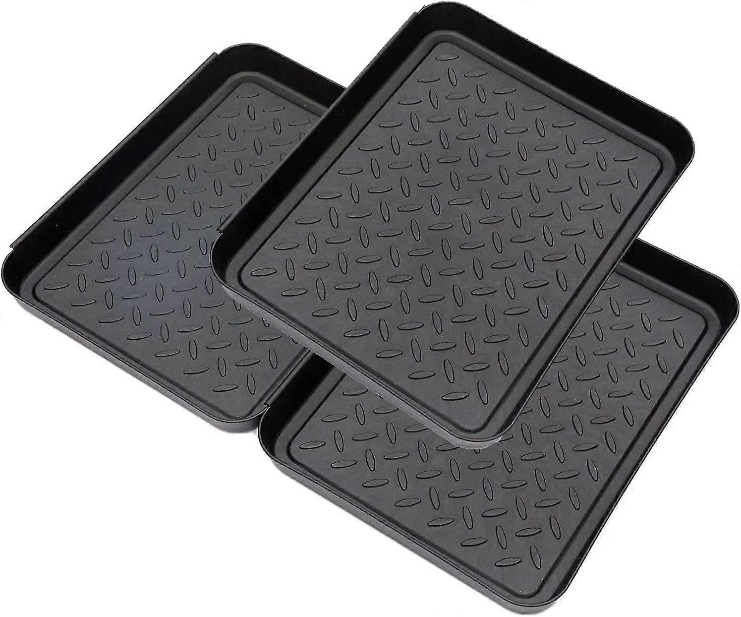 Boot Tray 3Pack (13.8X10.8X1.2in) Rubber Plastic Mat for Entryway, Indoor/Outdoor Floor Protection, Wet Shoes Drip Tray