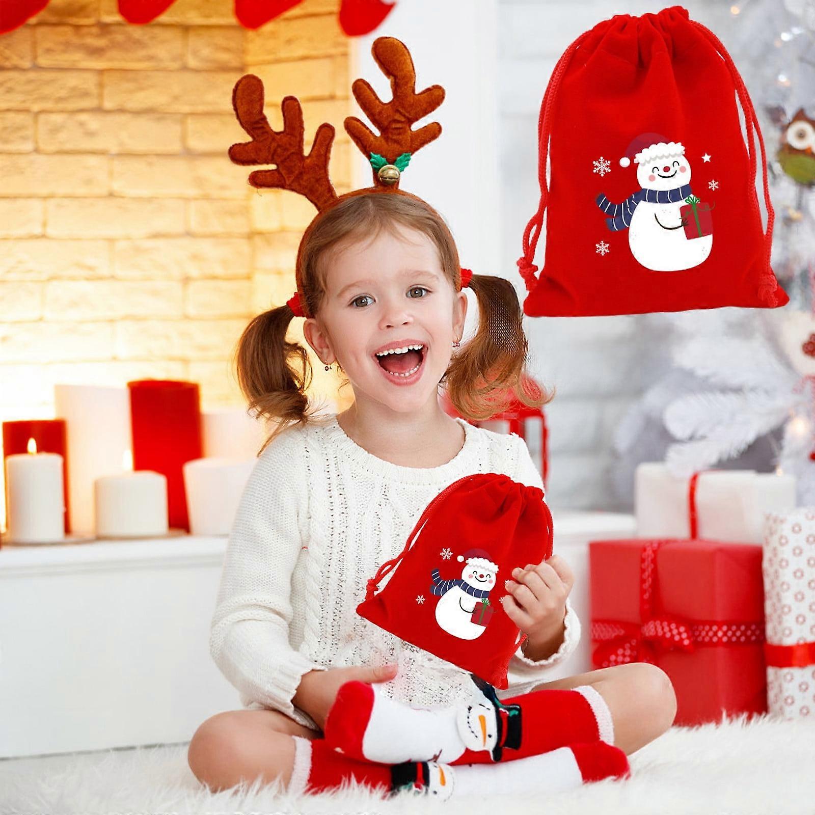 Gnobogi Christmas Flannel Drawstring Bag 7.87x5.91in, Compatible with Christmas Apples Candy Packaging & Gift Bags on Clearance