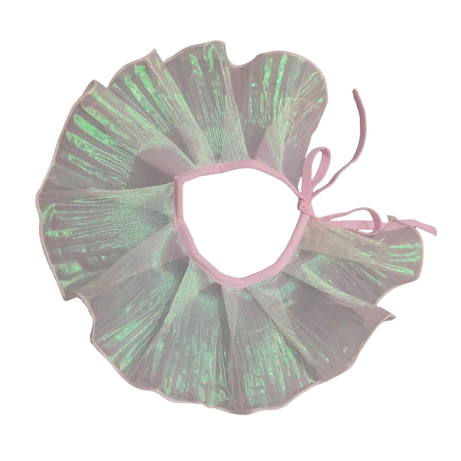 Women Elegant Detachable False Collar Pleated Ruffle Shawl Scarf Sweet Shining Colorful Organza Lace Up Boleros Capelet Multicolor