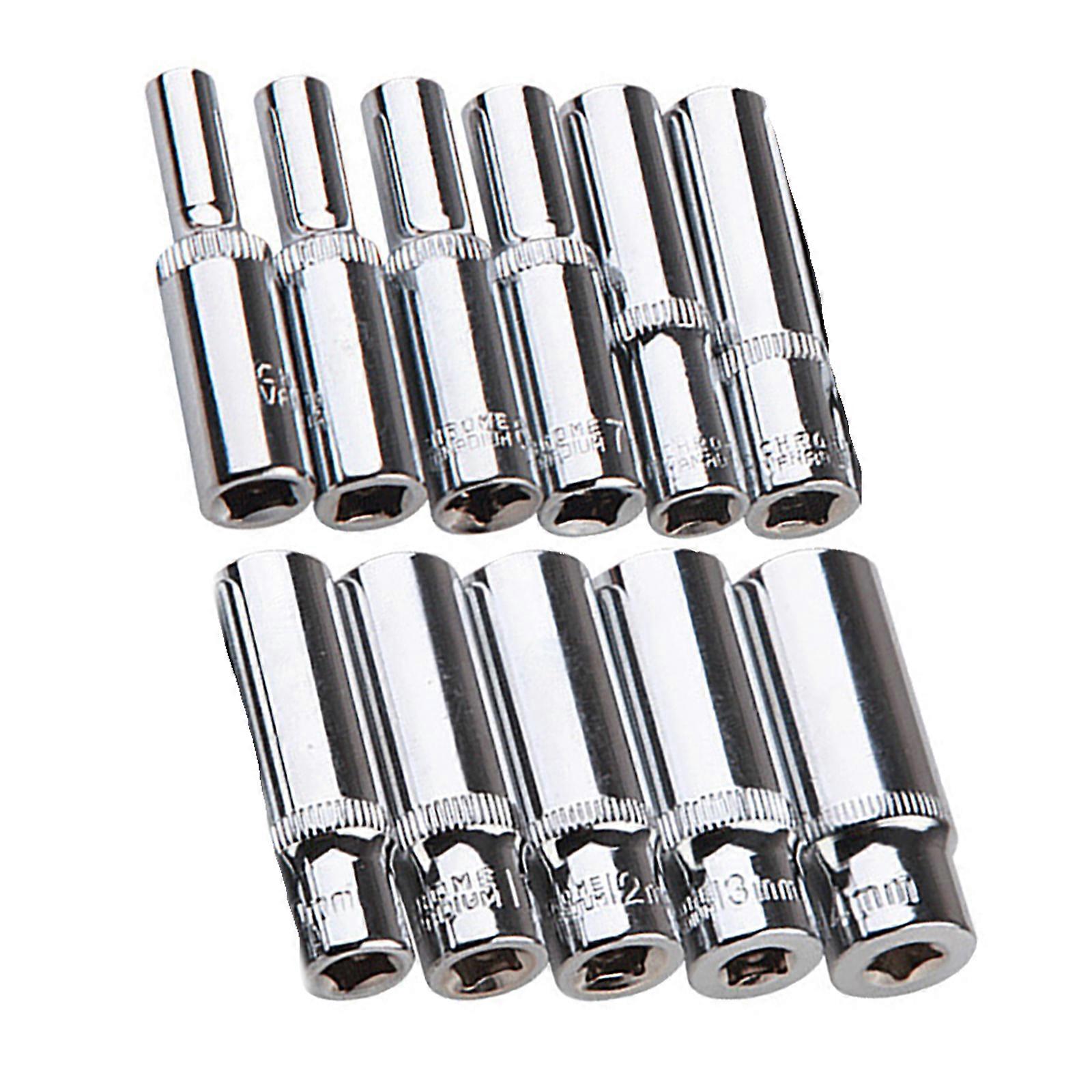 11Pcs Professiona 1/4inch Drive Long Socket Head Deep Socket Car Repair Ratchet Wrenches Tool Replacement Multicolor