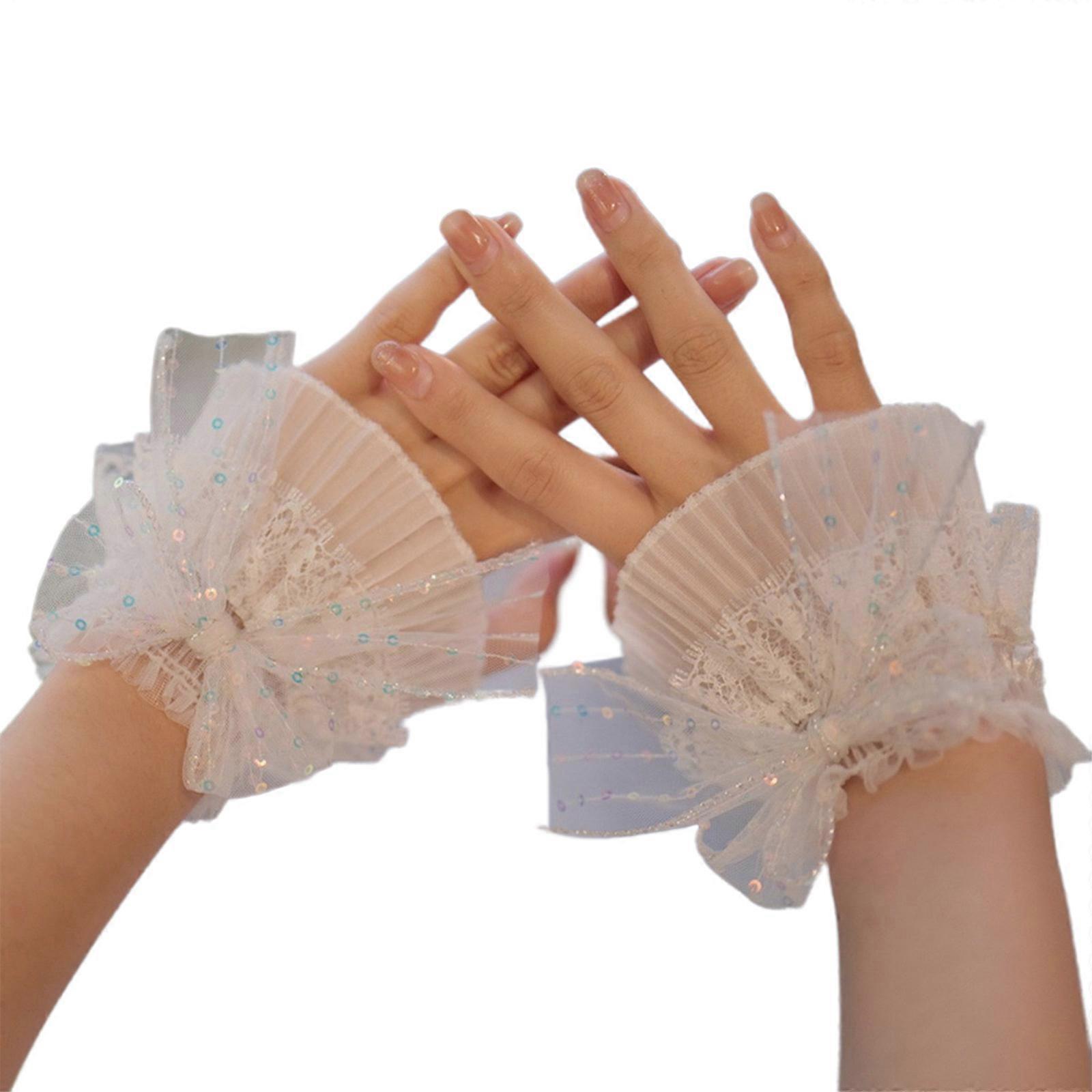 False Flared Sleeves Detachable for Hoodie Sweater Decorative Bowknot Sleeves Flared Wrist Beading Wrist Cuffs Multicolor