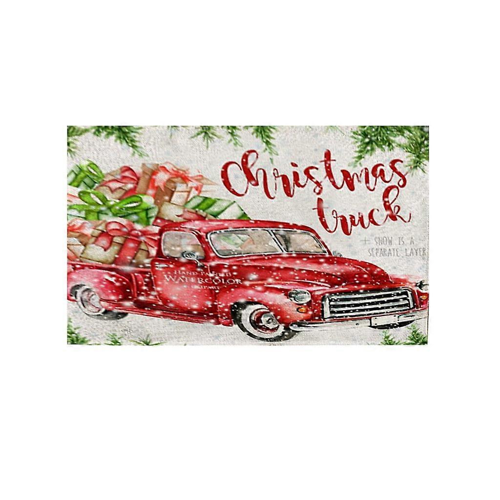 Christmas Truck Placemat, Vintage Red Truck & Cardinal Scene, Non-Slip, Heat-Insulated, Washable Cotton Linen, compatible with holiday table decor
