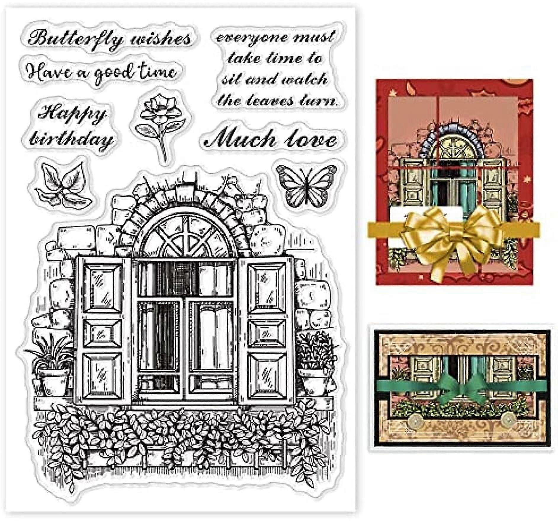 Window Flower Pattern Clear Stamp - Compatible with Card Making, Scrapbooking, Decoration - Butterfly Scenery Silicone Transparent Seal