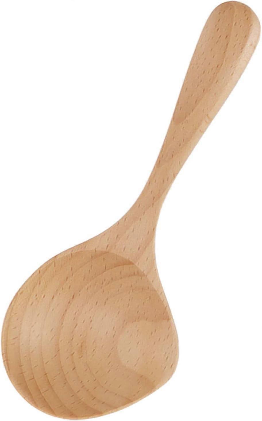 Wooden Ladle, Long Handle Soup Spoon, Beech Wood Cooking Ladle, Handcrafted Rice Porridge Spoon, Compatible with All Pots