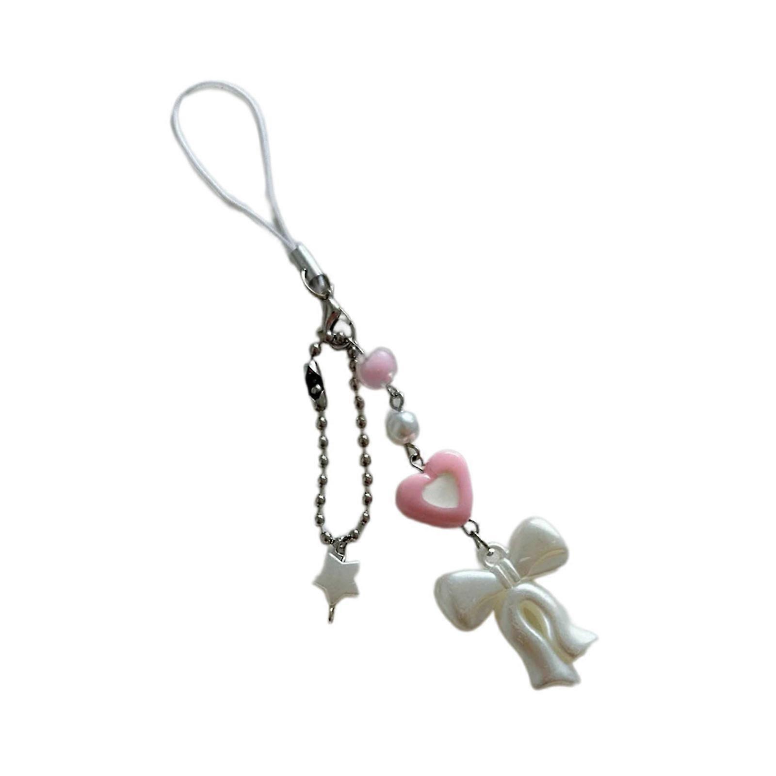 Stylish Pink Cake Keychain Bag Decoration Sweet Pink Cake Keyring Beaded Bowknot Hangings Decors for Phones and Handbags Multicolor