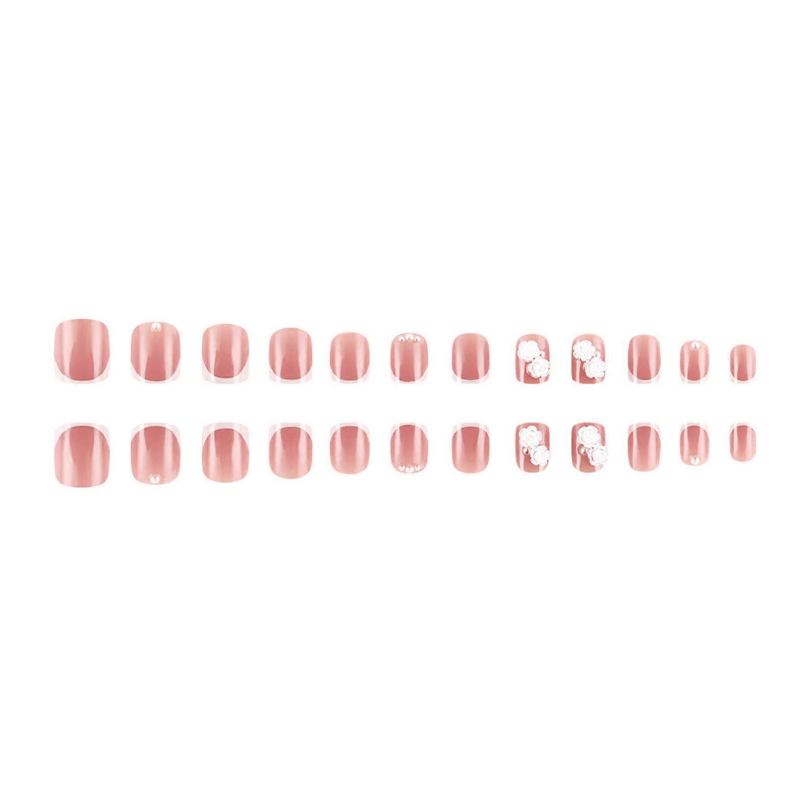Valentine's Day Press On Nail Short Square Acrylic False Nail French Tips Stick on Nail With 3D Flower Designs Multicolor