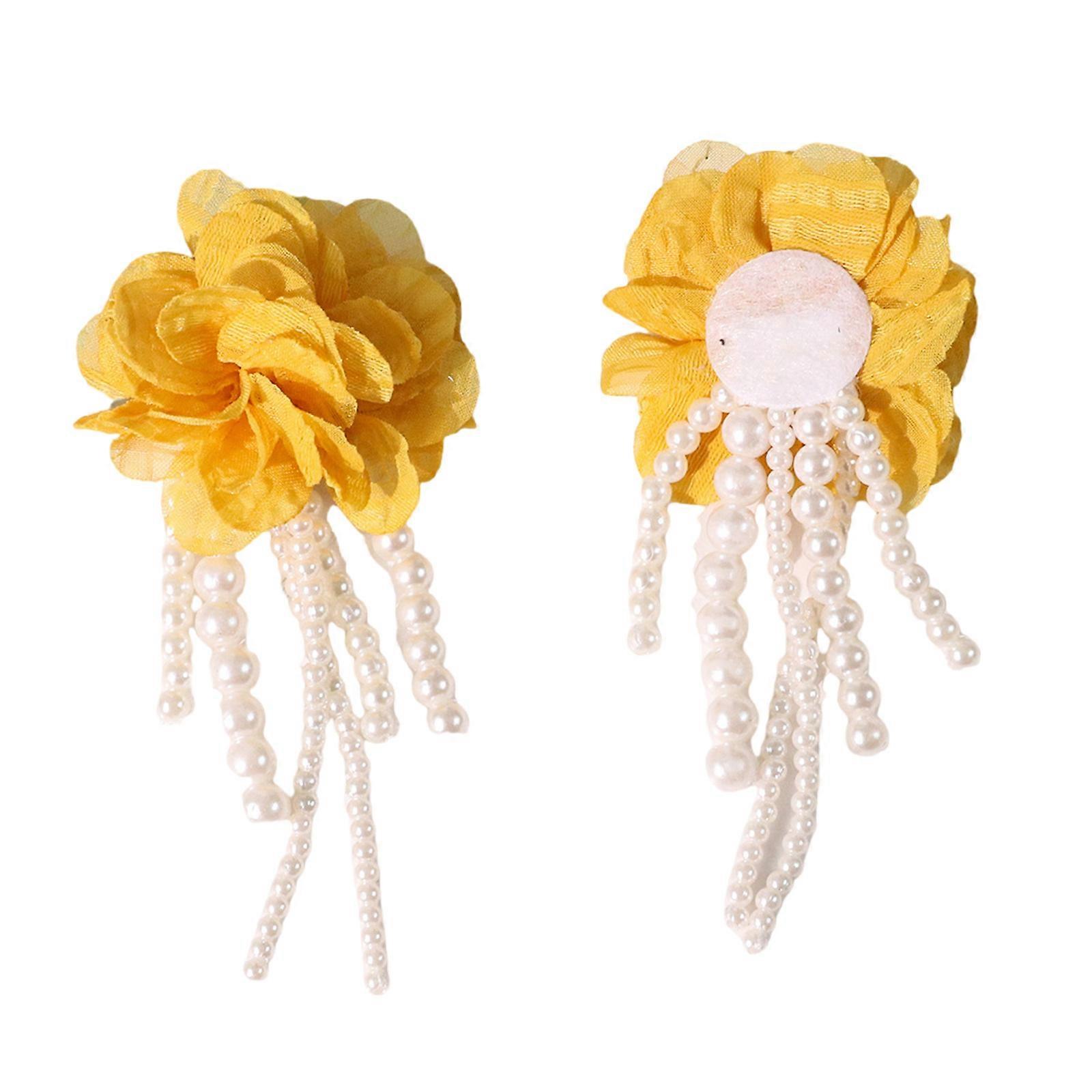 Flower Sewing Hair Clip Brooch Elegant Pearls Chain Jeweled for Decoration Pearls Appliques Sew on Dress Yellow