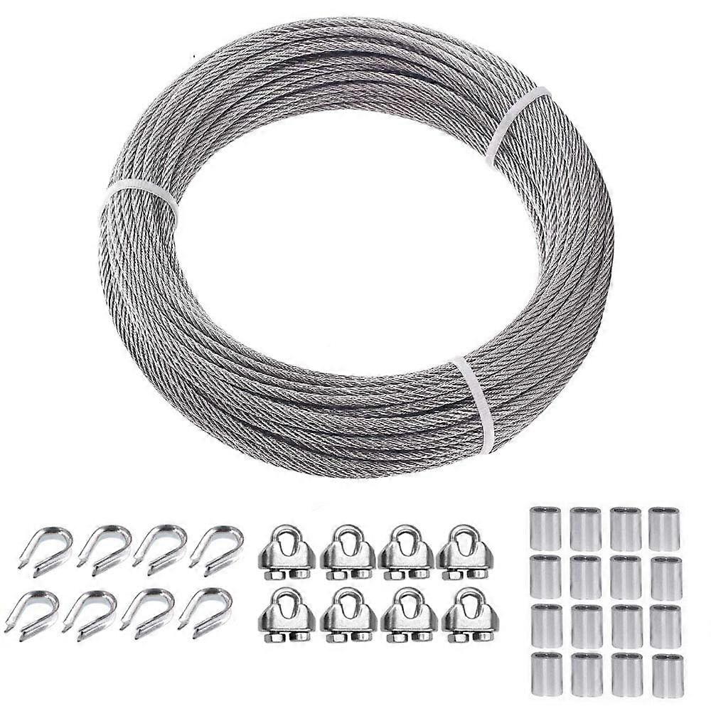 Stainless Steel 1/8" Cable Wire Rope, 50ft Kit with Clamps Compatible with Sun Shade Sail, Triangle/Rectangle Fixing