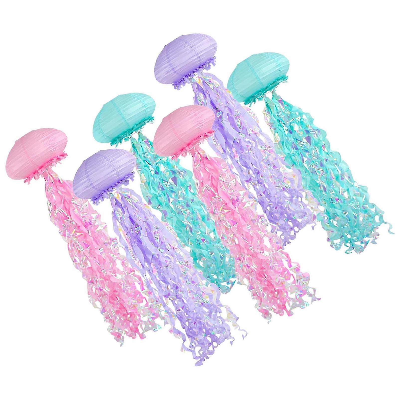 Pack Of 6 Jellyfish Hanging Decorations Paper Lamps for Under The Sea Party Birthday Parties Supplies Ceiling Ornament Multicolor