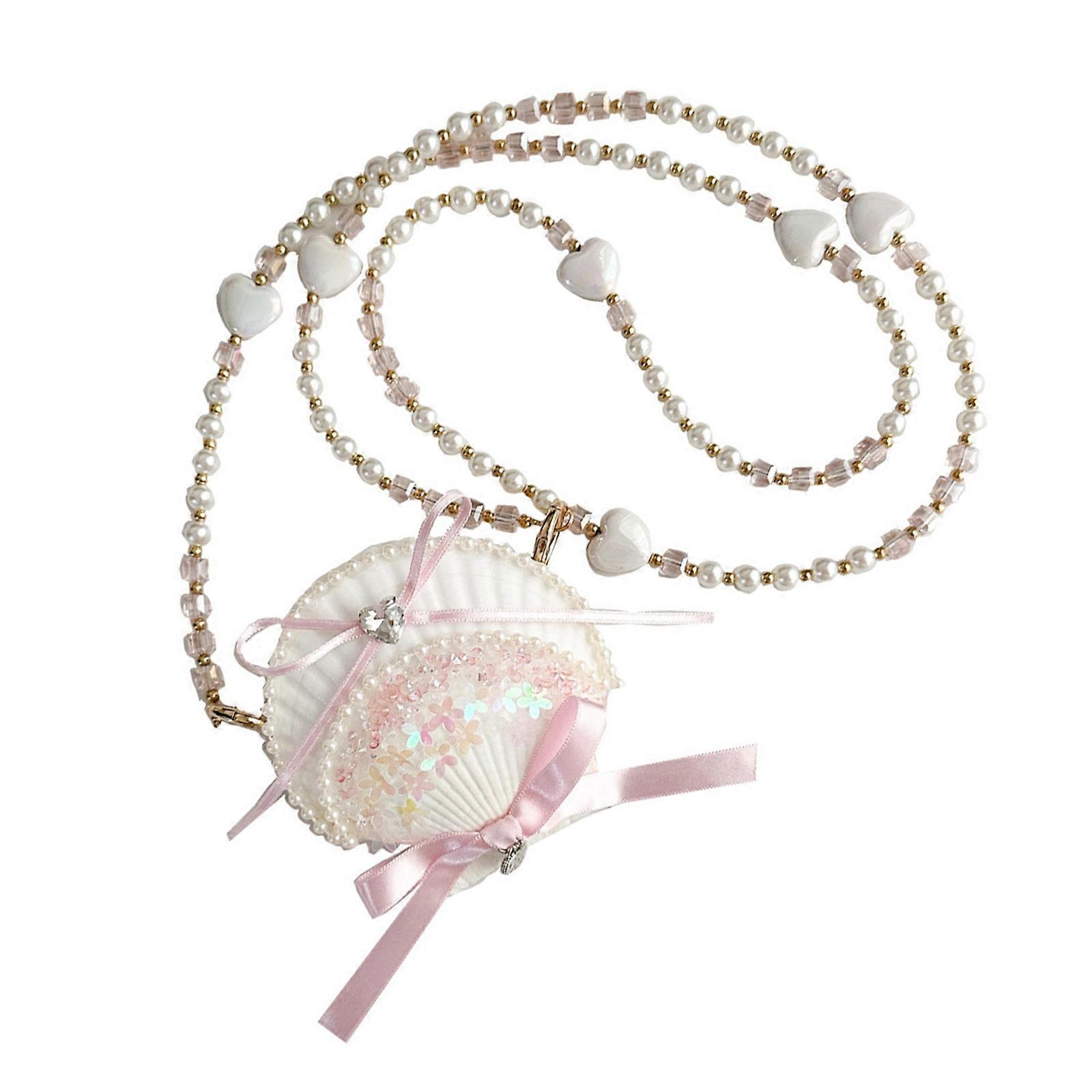 Fashion Forward Pearls Beaded Bag Shoulder Strap Sequins Adorned Shell Charm Elegant Essential Crossbody Accessory 120CM Pink