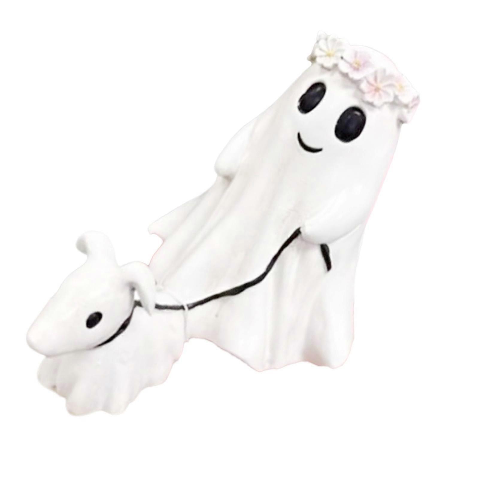 Halloween Ghostly Dog Walker Ornament Resins Figurine Sculpture for Festivals Parties Book Shelf and Desktop Decors Multicolor