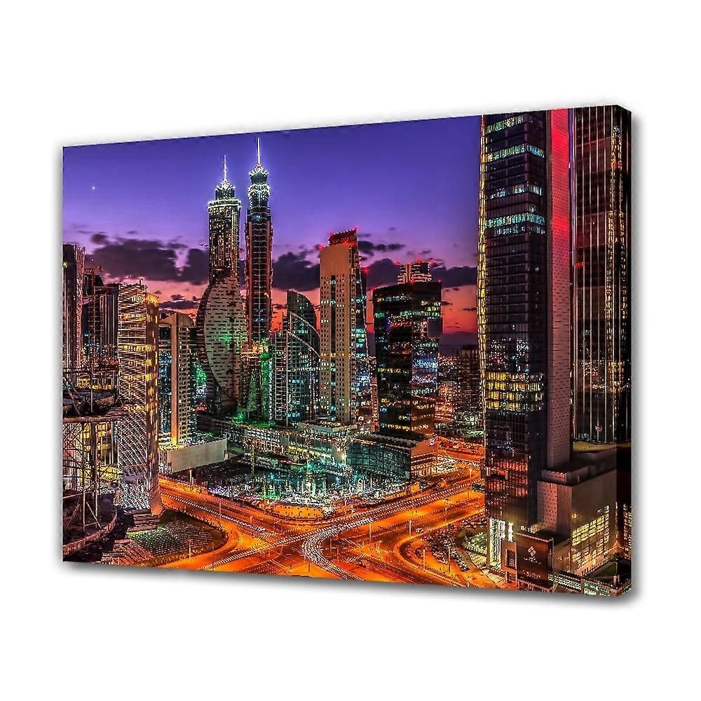 Modern City Lights Night Dubai Canvas Poster, 16x24 inch, Frame-style, Compatible with Home Office Decor