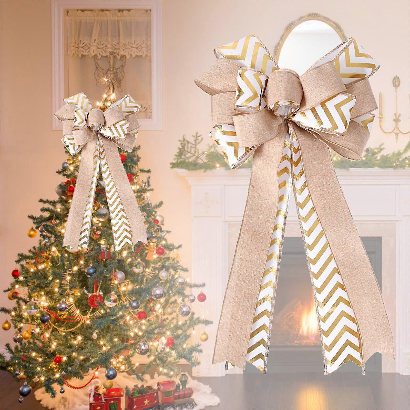 Yakbaofuo Christmas Event & Party Large Christmas Bow Thanksgiving Decoration Double Burlap Bow Clearance