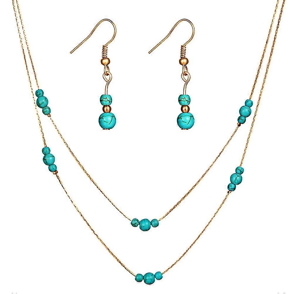 Turquoise Earrings and Necklace Set Fashionable Double-layered Pendant Necklace Women